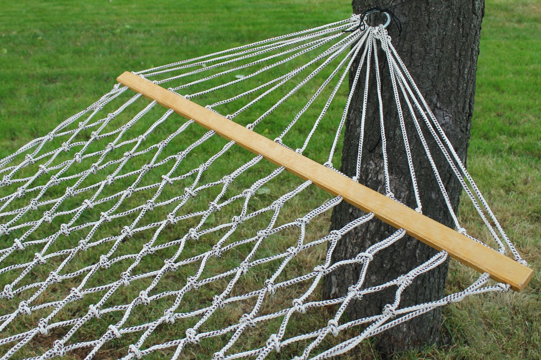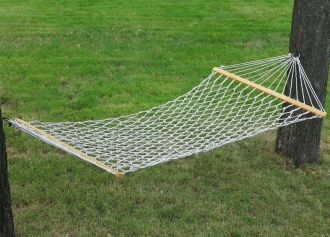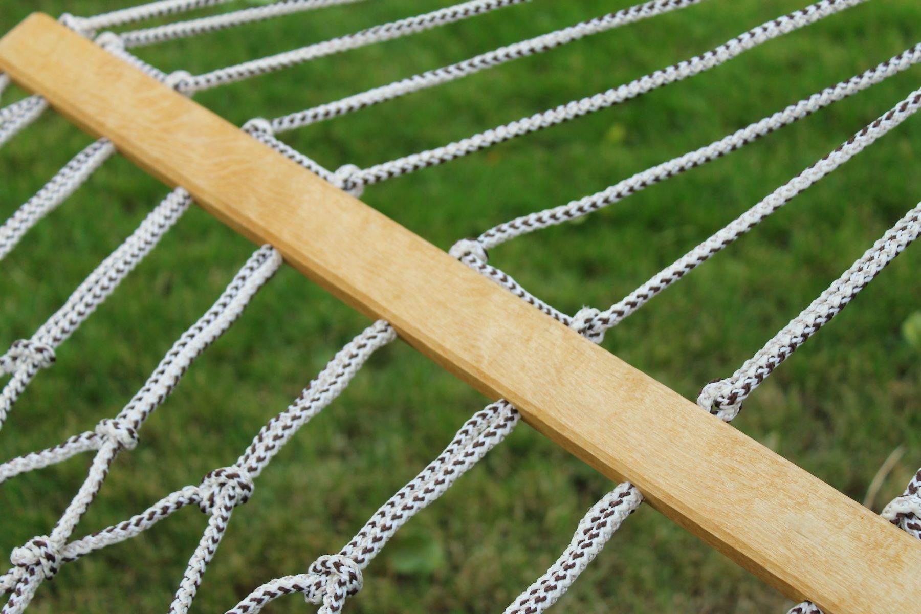 Плетёный гамак для комфортного летнего отдыха на даче, на природе. Гамак дарит прекрасные возможности отдохнуть и расслабиться на свежем воздухе в тени деревьев или на солнце.