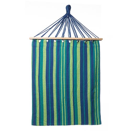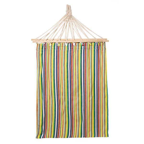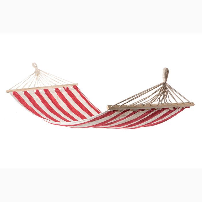 Гамак с планкой выполнен из натуральных материалов. Поперечная планка изготовлена из прочного дерева, а материал гамака 100% хлопок. Гамак рассчитан на нагрузку до 100 кг.