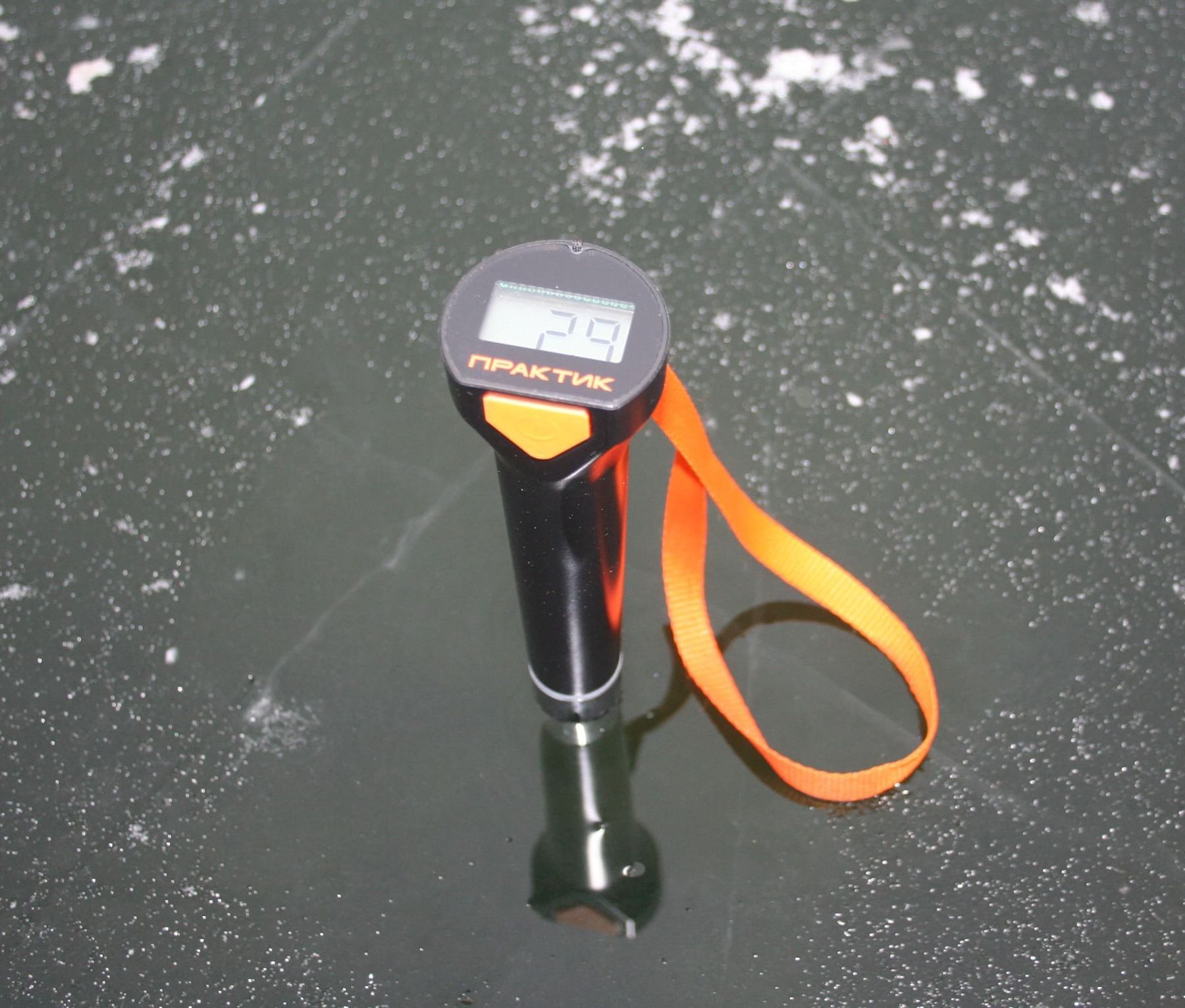 Глубиномер Практик – один из немногих представителей эхолокационного оборудования на рынке, способного работать через лед. То есть при соблюдении определенных требований эксплуатации в зимний период, Вы сможете измерить глубину находящегося под Вами слоя воды без необходимости бурения лунки. Достаточно просто обеспечить достаточный акустический контакт между датчиком эхолота и поверхностью льда путем его небольшого растапливания или создания водяной прослойки любыми подручными средствами.