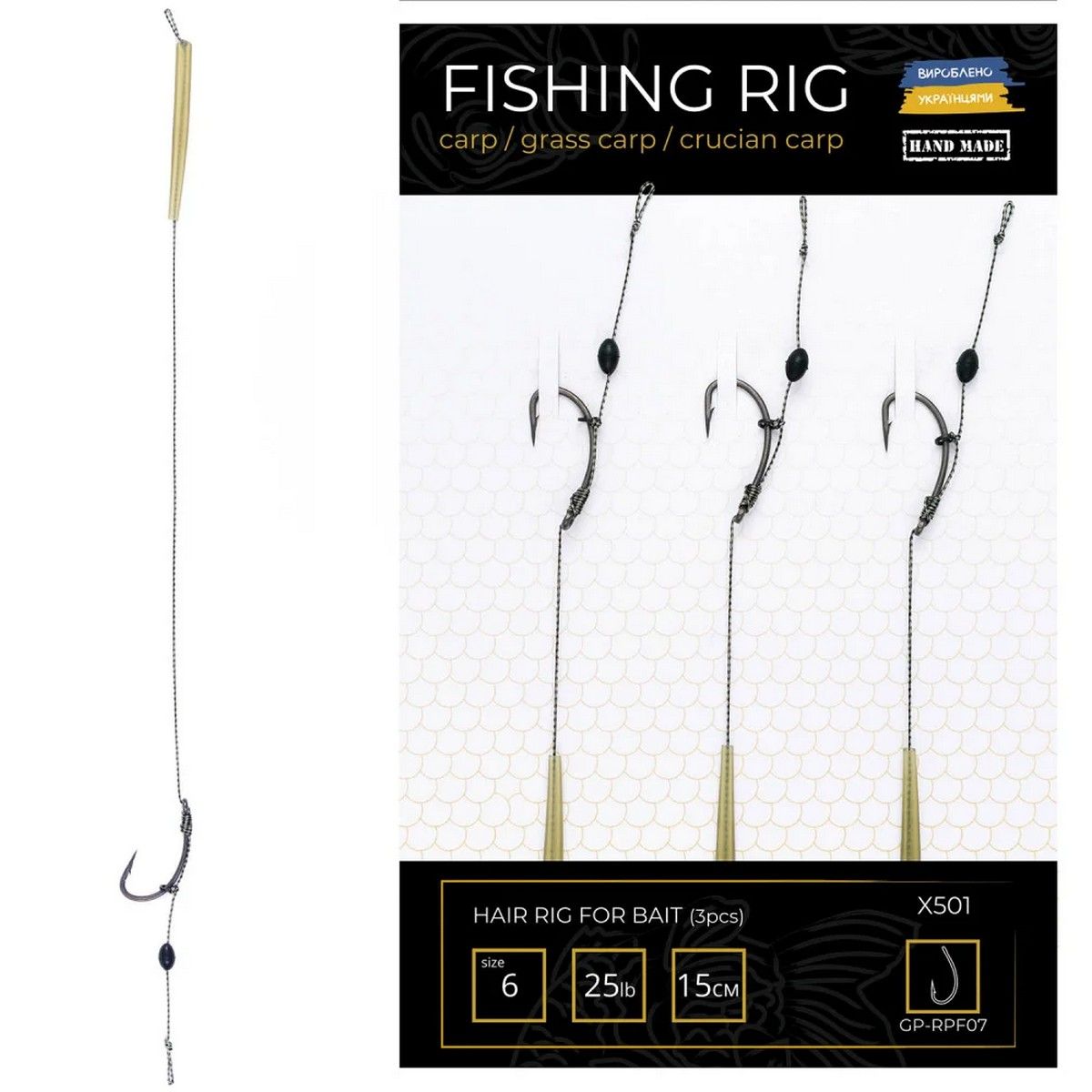 Готовые поводки RPF с волосом на кольце - 15 см - Для насадок Ø24 мм с подсадкой - 3 шт/уп