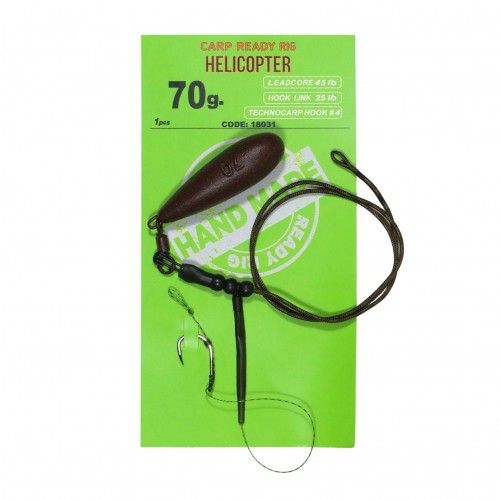 "Вертолет" готовый монтаж незаменим при ловле на дальних дистанциях и на сильно заиленном дне. Недостаток – менее выраженная засекаемость, чем у «безопасной клипсы» и «инлайн».