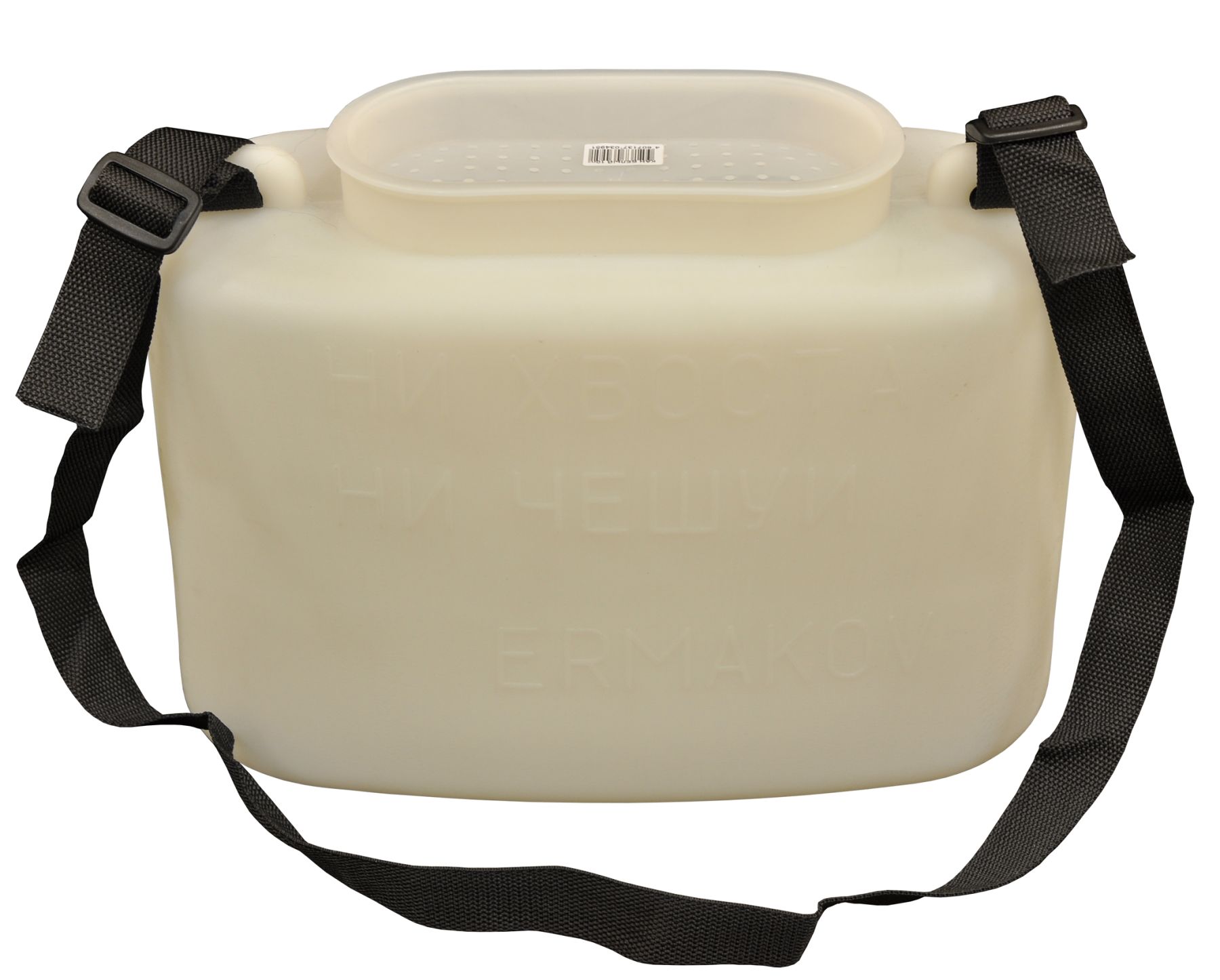 Кан Ермаков разработан с учётом специфики как высоких температур, так и сурового мороза. Пластиковый корпус плоской формы. Широкая, овальная горловина с хорошим доступом. Закругленная форма не травмирует живцов. Текстильная, мягкая лямка для переноски кана не создает неудобств. Крепится через две дужки в верхней части по принципу затяжки и не развяжется под весом. Крышка с отверстиями, для доступа воздуха, вентилирует емкость и не дает задохнуться живцам. Крышка не вылетает и не позволит активным живцам выпрыгнуть из тары.