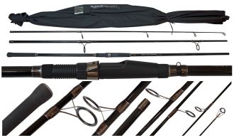 Удочка произведена из высокомодульного карбона и характеризуется трёхчастной штекерной конструкцией, что позволило добиться небольшого веса, чувствительности и изящности бланка. Имеет крупные пропускные кольца, позволяющие применять шок-лидер и делать дальние забросы. Характеризуется параболическим строем, что также способствует высокой бросковости и повышает амортизационные свойства бланка на вываживании. В данном типоразмере карповик подойдет для облавливания средних дистанций оснастками весом до ста двадцати граммов. Рукоять оборудована неопреновыми вставками и комплектуется винтовым катушкодержателем облегченной конструкции.