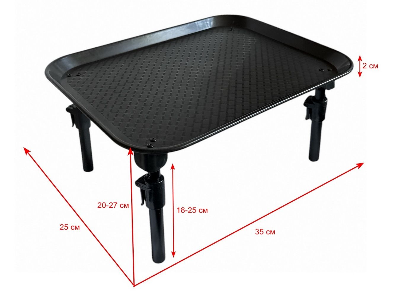 Карповый монтажный столик Anvi под подставку - С ножками - Складной - 35х25х(2+18+7) см - Пластик - Чёрный