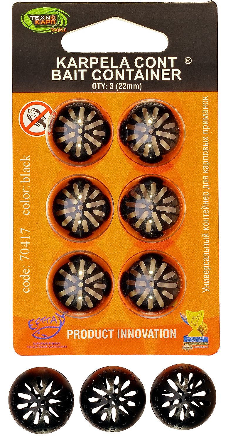 Универсальный контейнер для карповых приманок Karpela Cont Технокарп - 22 мм - 3 шт./уп - Черный