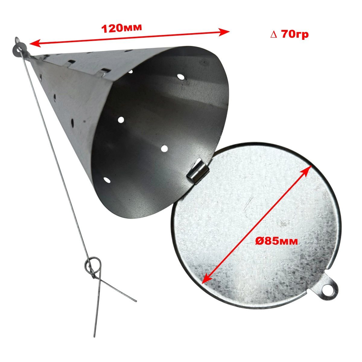 Стартовое прикармливание рыбы в зимний период – очень важный процесс, от которого зависит успех ловли. Для того чтобы точечно закормить небольшой участок дна, отлично подойдет металлическая конусная зимняя кормушка Fishing Roi с небольшими отверстиями.