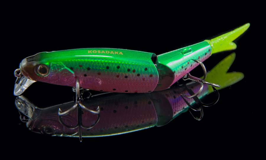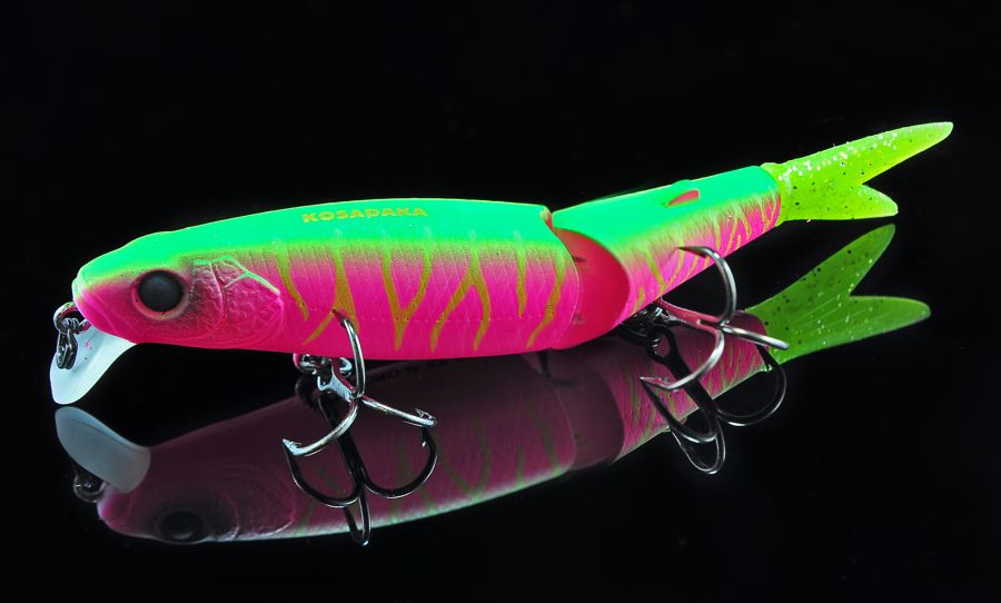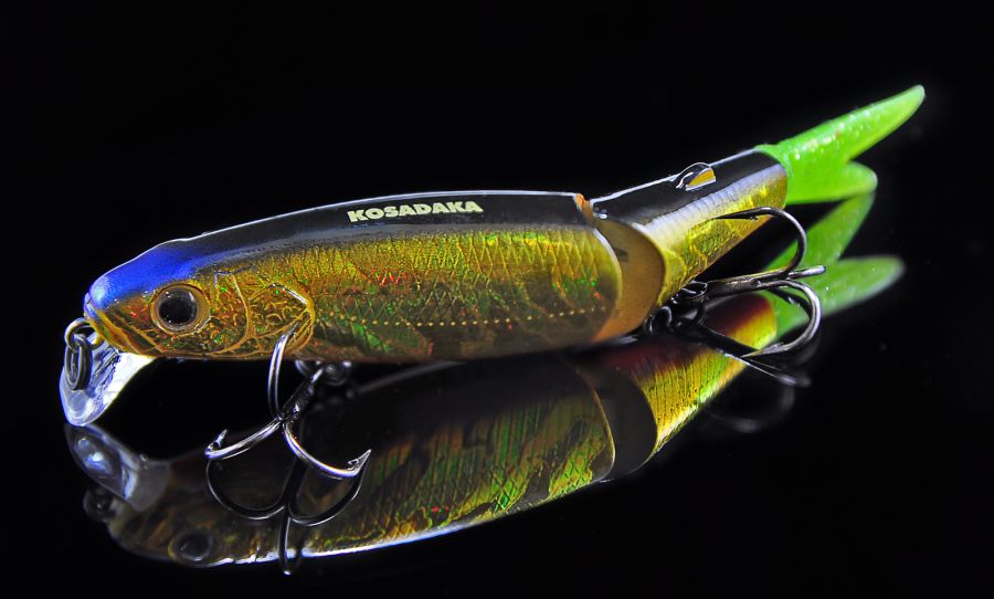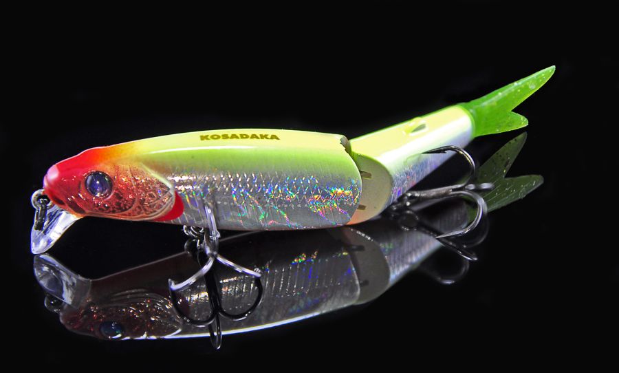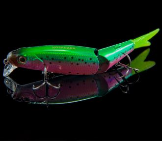 Двухсоставной воблер с мягким блестящим силиконовым хвостиком - его тело состоит из двух частей, надежно соединённых специальными петлями. Задняя часть воблера отклоняется в сторону относительно передней, под углом до 30 градусов, что добавляет его игре дополнительную привлекательность. А силиконовый хвостик добавляет неподражаемой живости в движениях воблера привлекая самого капризного хищника.