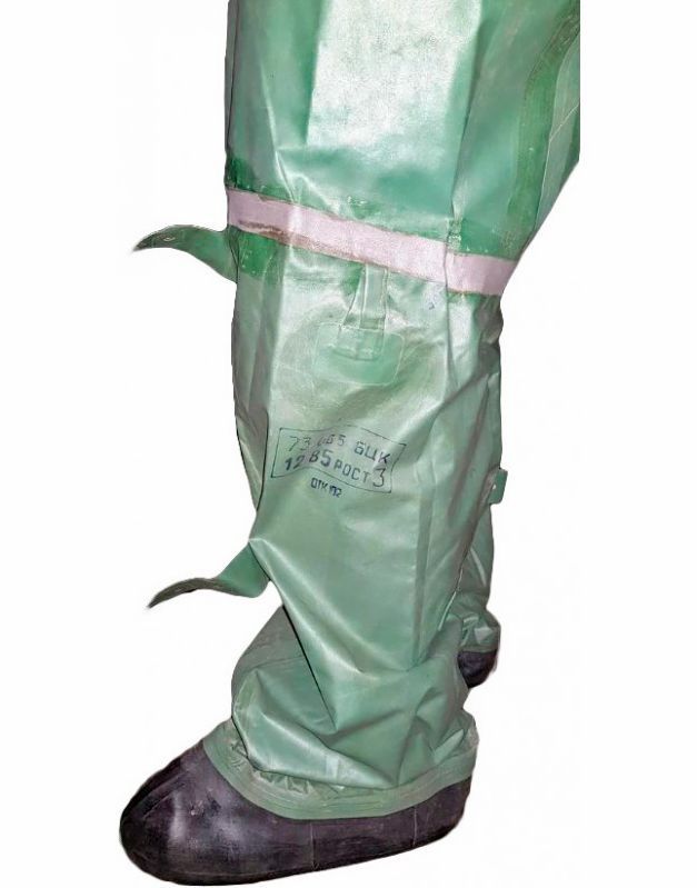 Костюм ОЗК Л-2 отличает цельное литье с бахилами комбинезона, а так же усиленные локти на куртке и колени на полукомбинезоне.