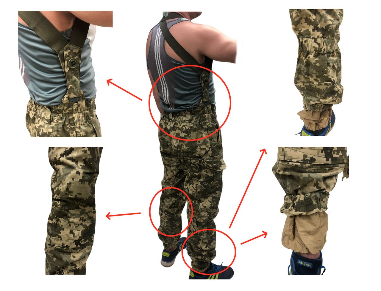 - Внизу штанина внутри оснащена дополнительной сеткой на резинке (натягивается на берец), защищает от насекомых, грязи и пыли.