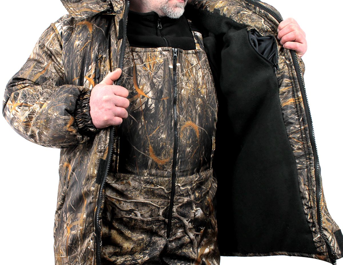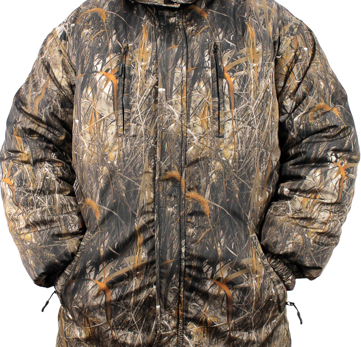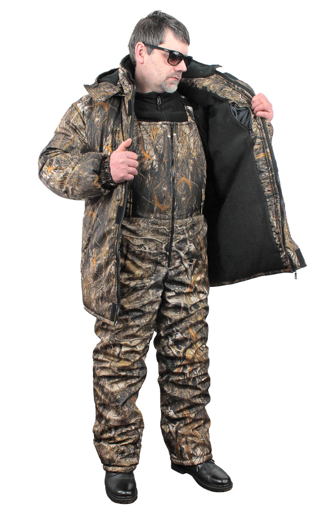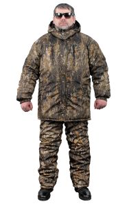 Этот тёплый, дышащий зимний костюм отлично подойдёт для активного отдыха на природе при температуре воздуха до минус 25 градусов. Состоит он из куртки и полукомбинезона. Костюм очень лёгкий и не стесняет движения. Ткань мягкая, гладкая на ощупь, при движении не создаёт дополнительного шума, можно не боятся спугнуть добычу из-за шуршания одежды. Охотничий костюм рассчитан как на активные перемещения, так и на сижу.