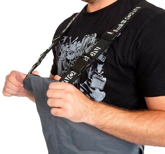 В районе колен и седалища вставки из более прочной ткани. Предусмотрены дополнительные съемные вставки на коленях. Доступ к ним изнутри брюк. На коленях используется объемный крой, очень комфортный при частых приседаниях.