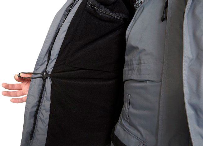 Молния тракторного типа YKK с двумя замками. Запах прикрыт дополнительными внешним и внутренним клапанами на застежке - липучке. В районе спины есть специальная вставка, увеличивающая дышащую область.