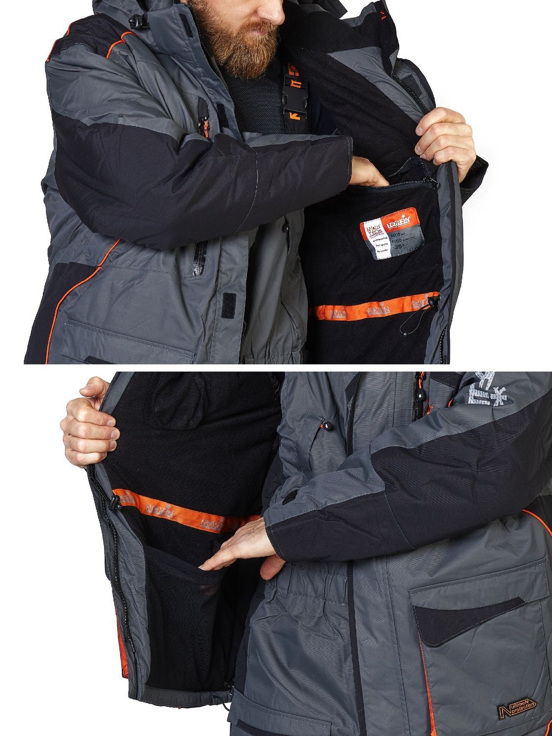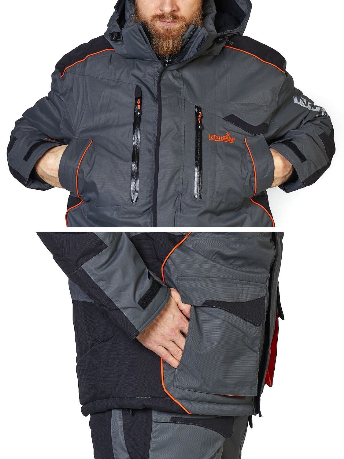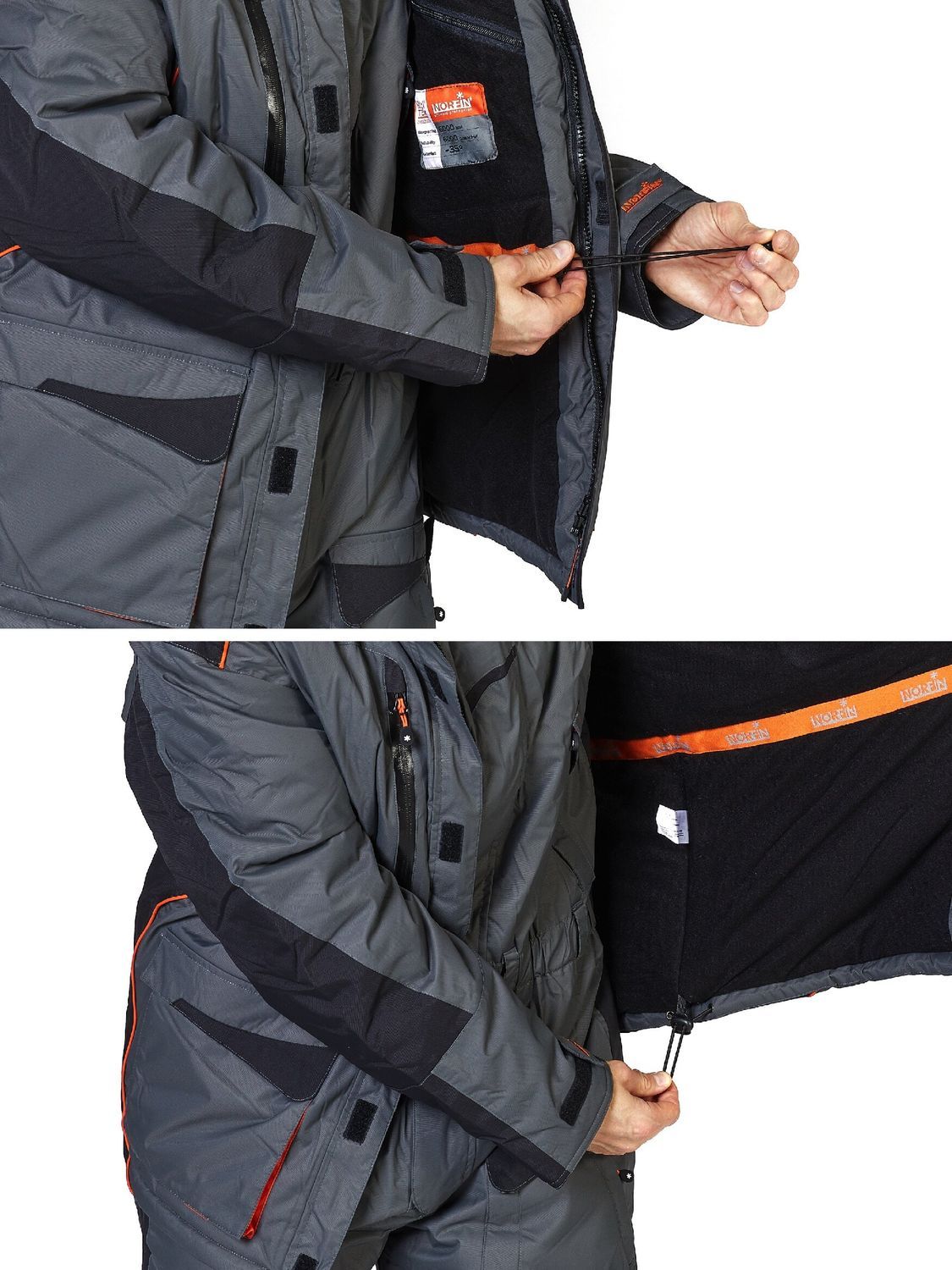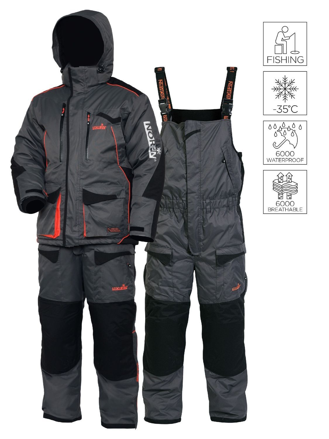 Дизайнеры Norfin позаботились и о функциональном удобстве, они предусмотрели большое количество карманов разного функционала и размеров в куртке и полукомбинезоне. Также одежда имеет большое количество светоотражающих элементов, что удобно в темноте.