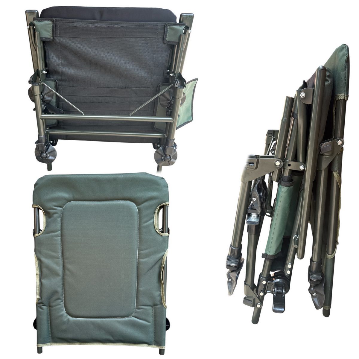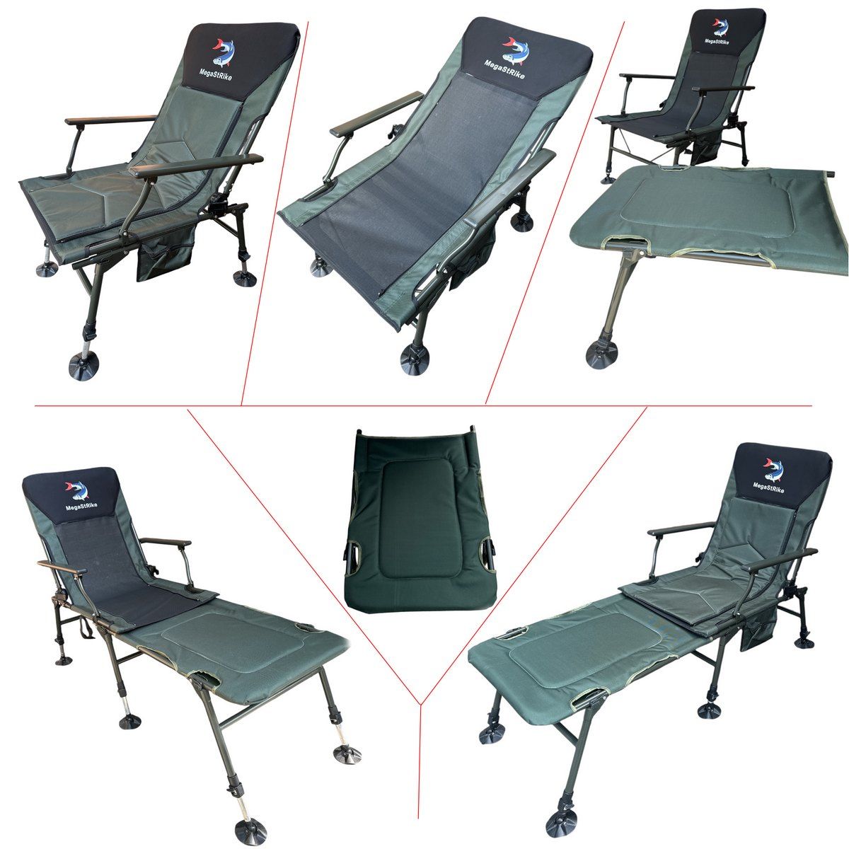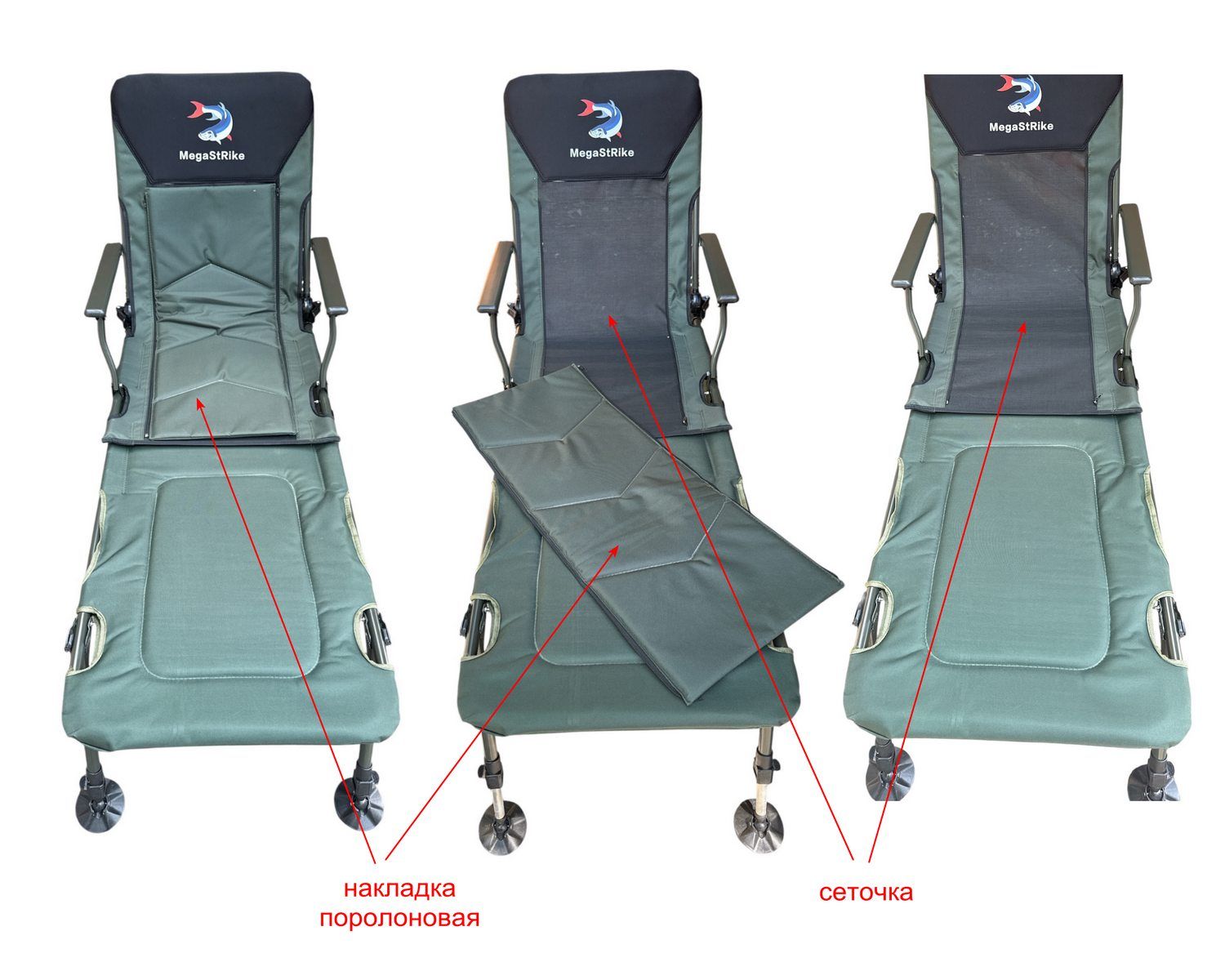 Карповое кресло Megastrike с подставкой для ног - SH9-3-8 - (70+50)x55x95 см - С боковым карманом на змейке - Олива