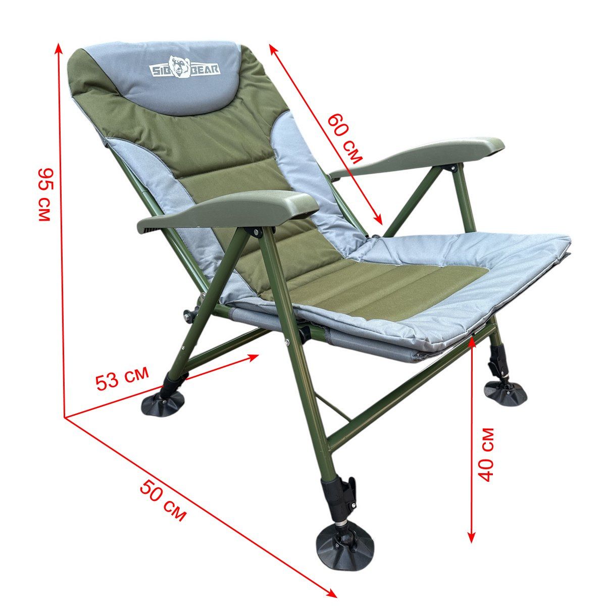 Карповое кресло Megastrike - SH9-3-9 - 50x53x95 см - 4 положения - Светло-серый