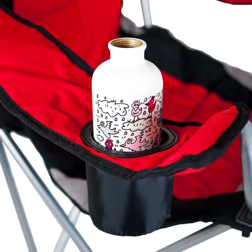 Мягкие тканевые подлокотники обеспечивают удобное положение рук без напряжения. В правом подлокотнике вшит специальный термоподстаканник – Ваш кофе будет дольше горячим, а вода – холодной. Вся площадь сиденья мягкая за счёт вспененного наполнителя. Главная изюминка кресла – возможность фиксировать спинку в трёх позициях. Это кресло очень вместительное – в нём комфортно может отдыхать даже очень крупный мужчина. Данная модель складывающегося кресла – лидер продаж среди всего модельного ряда.