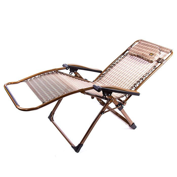 Раскладной шезлонг с настраиваемым углом, от 90 до 150 градусов. Этот шезлонг может быть использован как настоящая раскладушка. Максимальный вес, на который рассчитан этот шезлонг, составляет 110 кг.
