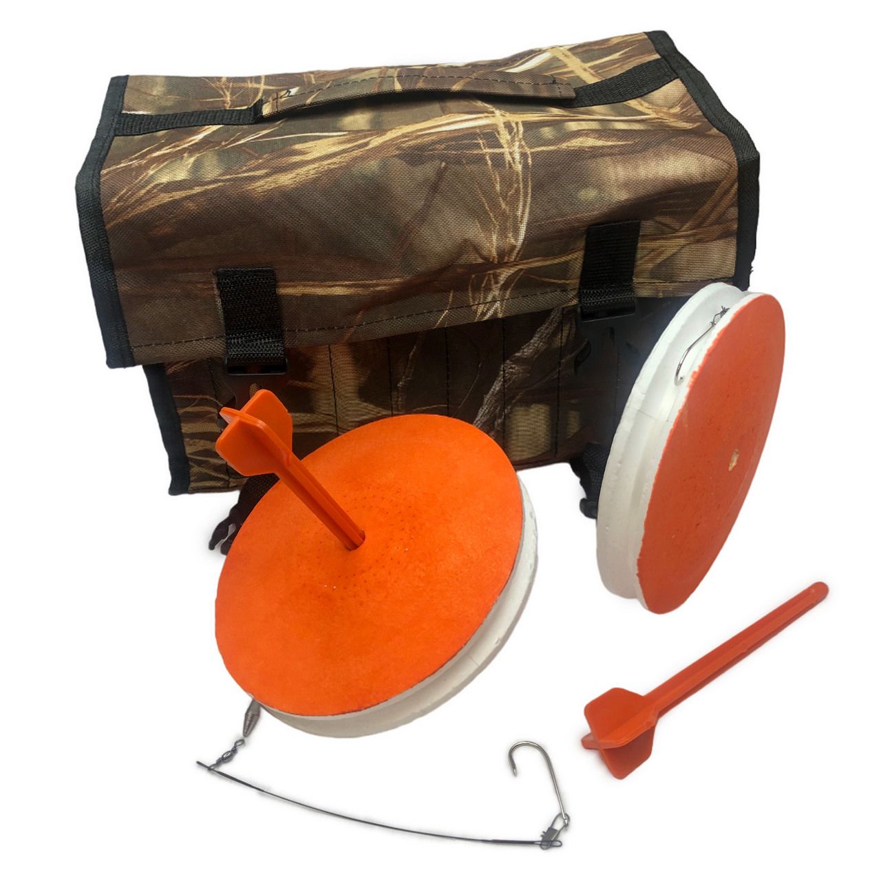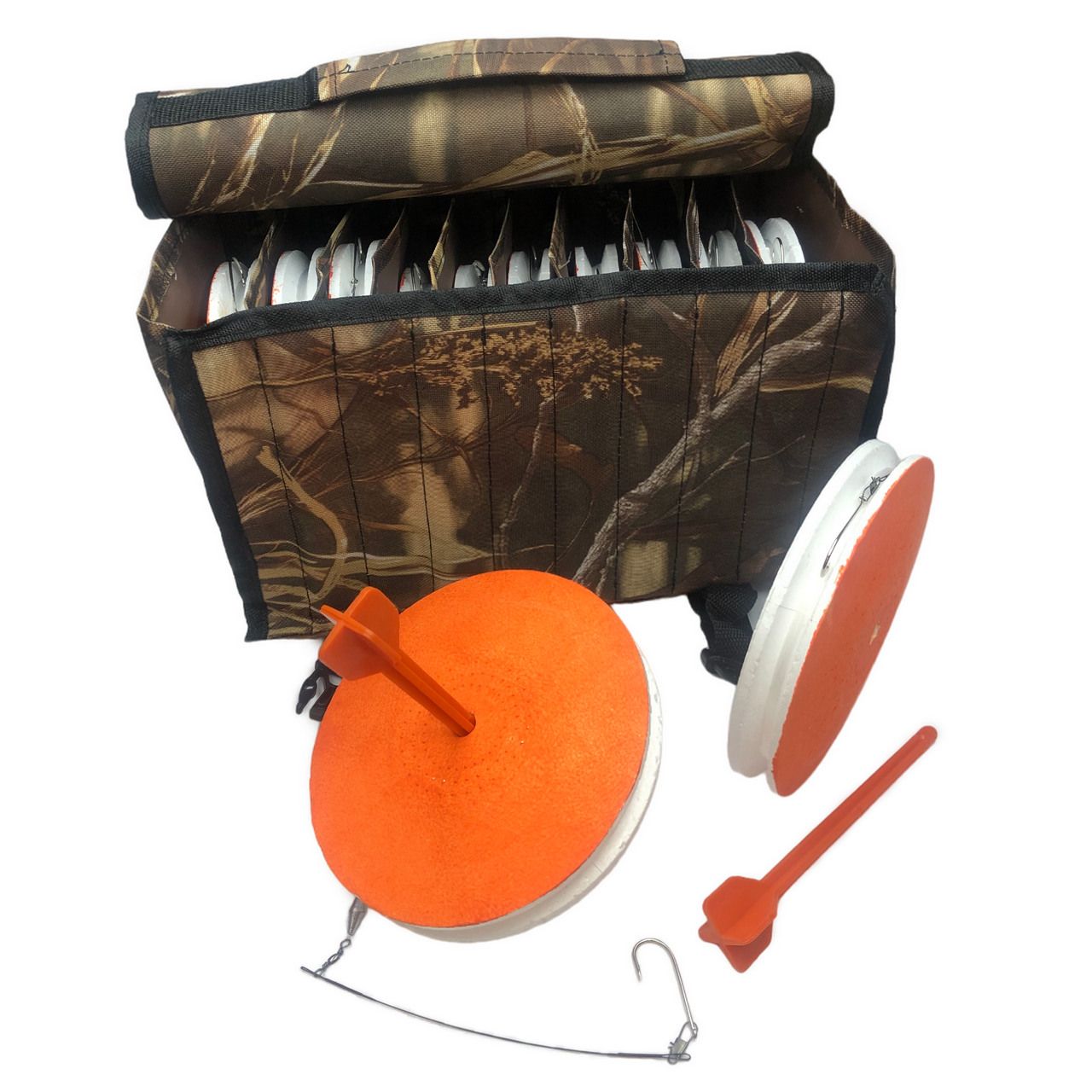 Кружки рыболовные купить лучше всего набором по 10 штук в удобной непромокаемой сумке. Сумка имеет 10 вертикальных секций, надёжные застёжки и ручку для переноса. Вы можете исходя из своих предпочтений выбрать расцветку сумки - от яркой до камуфлированной.