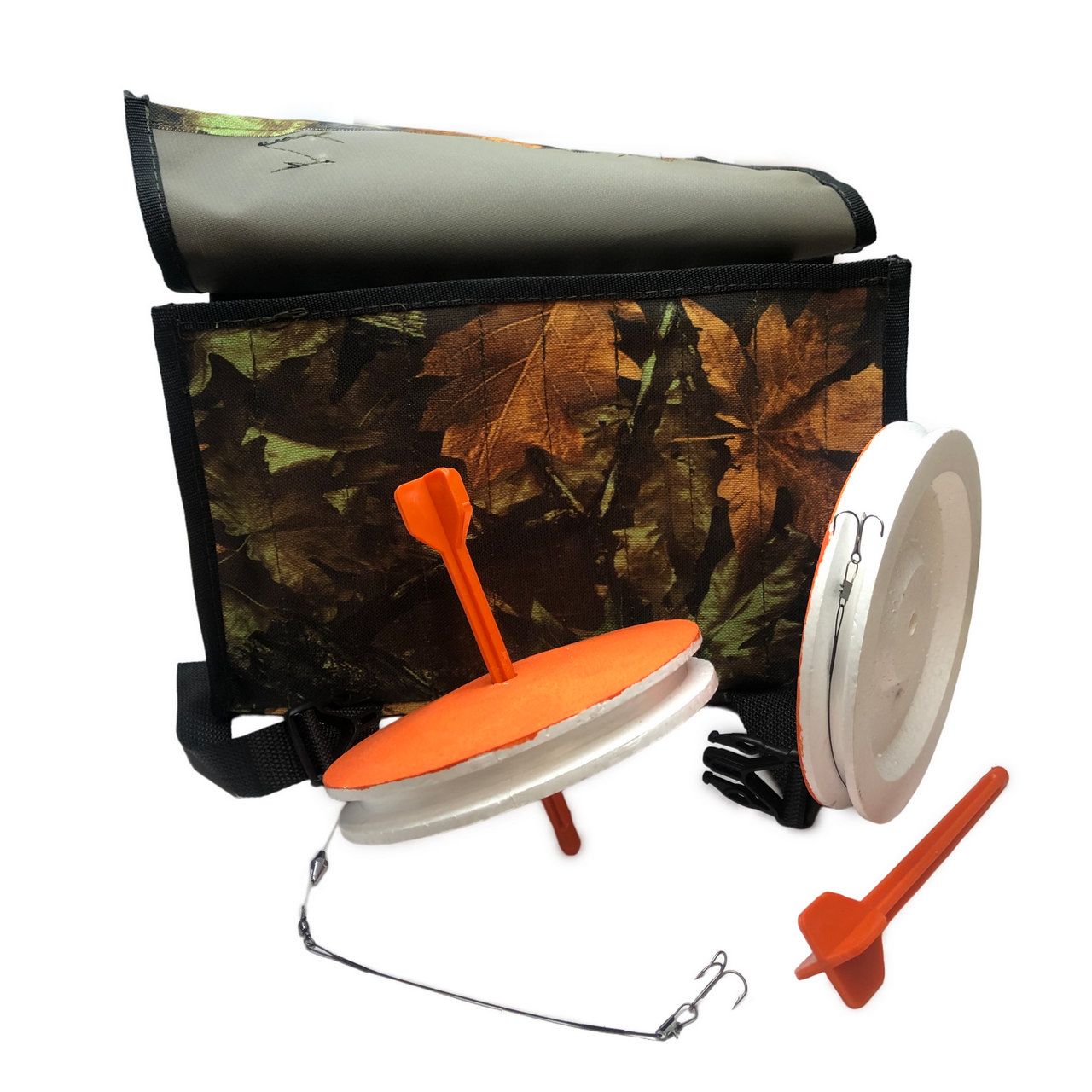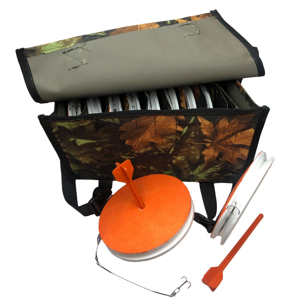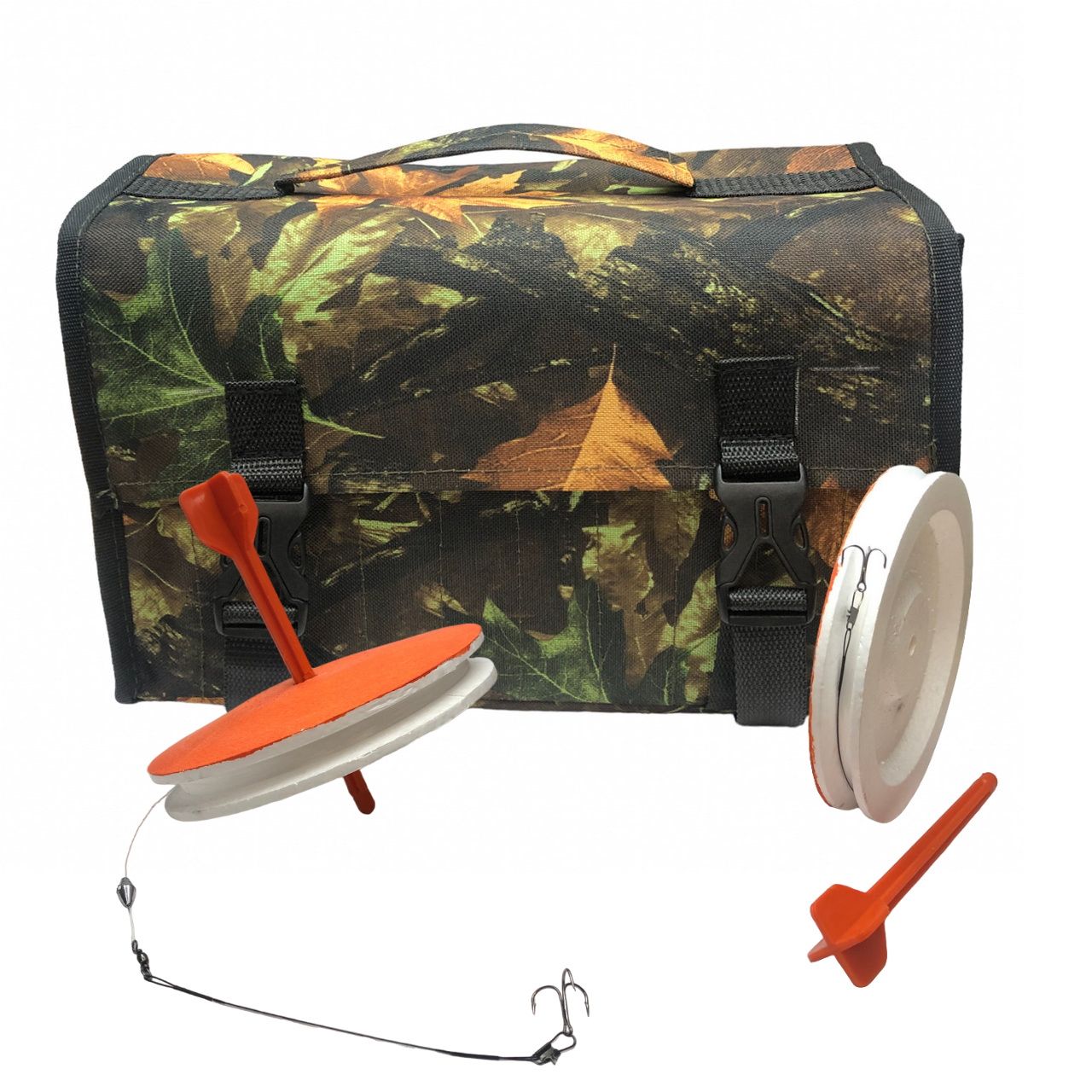 Кружки рыболовные купить лучше всего набором по 10 штук в удобной непромокаемой сумке. Сумка имеет 10 вертикальных секций, надёжные застёжки и ручку для переноса. Вы можете исходя из своих предпочтений выбрать расцветку сумки - от яркой до камуфлированной.