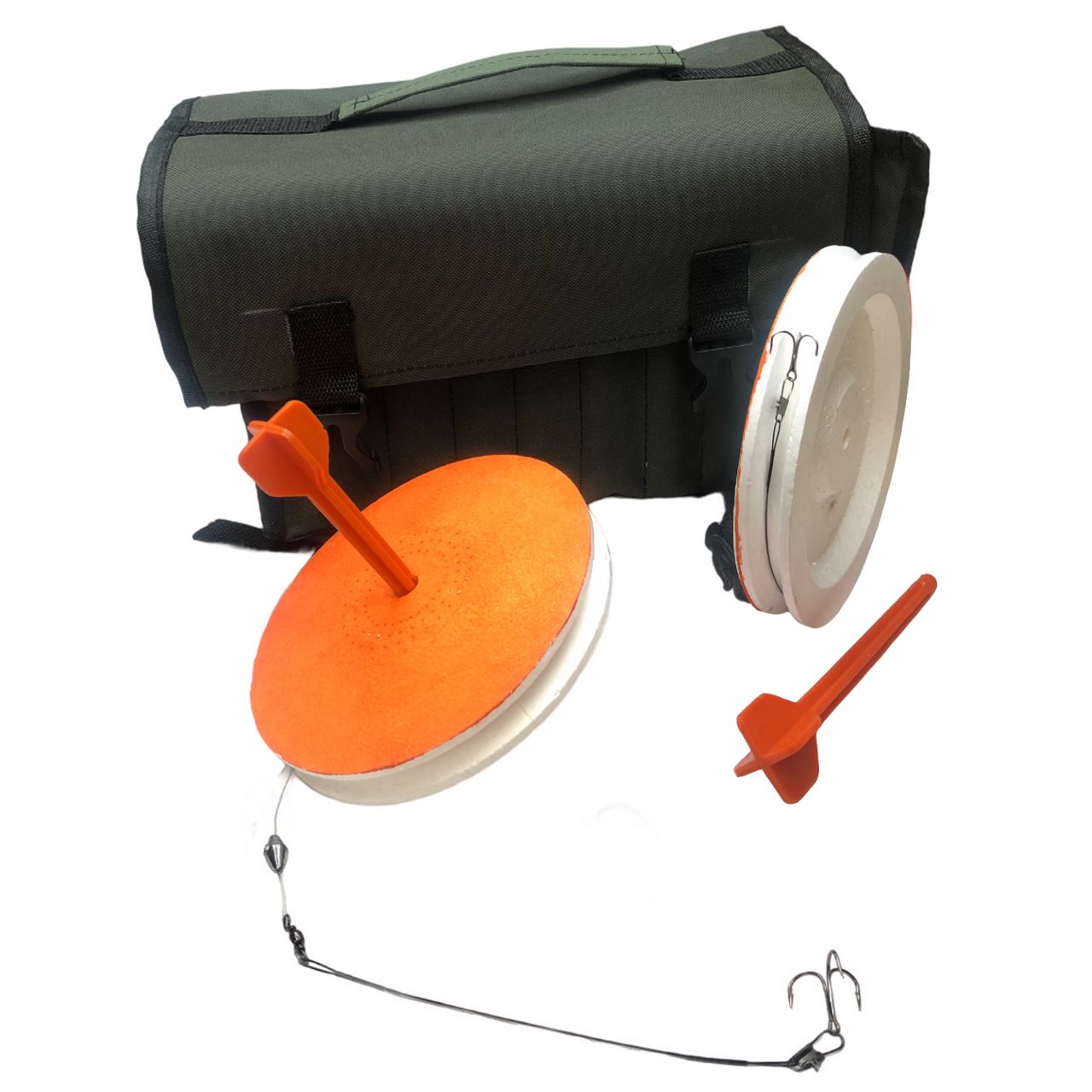 Кружки рыболовные - Оснащенные - Усиленные - Тройник №6 - 10 штук + сумка Хаки