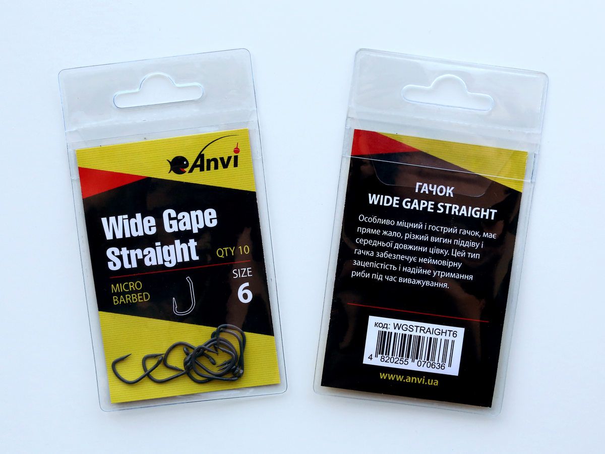 Крючки карповые Anvi Wide Gape Straight представлены в размерах №2, №4, №6, №8 и №10.