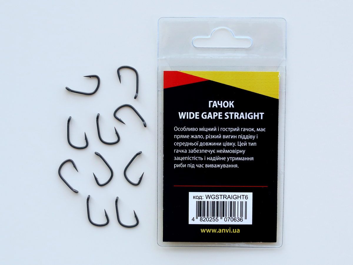 Крючок карповый Anvi Wide Gape Straight №6 - 10 шт/уп