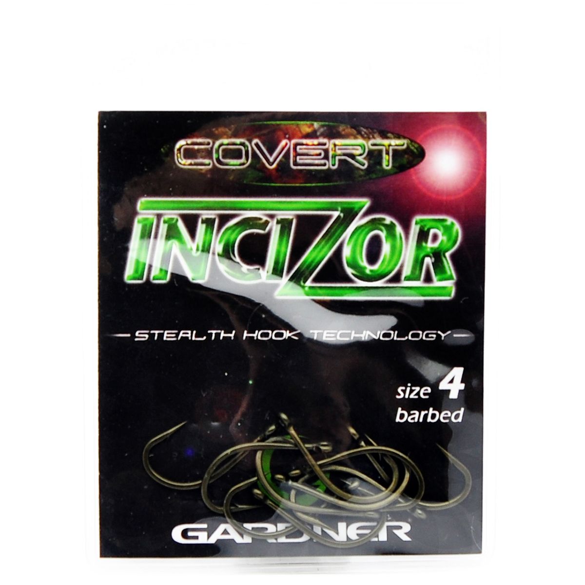 Gardner Covert Incizor – популярная среди рыболовов серия крючков для карпфишинга. Имеют классическую форму, характеризующуюся цевьем средней длины. Выпускается в нескольких типоразмерах, подходящих не только для карпфишинга, но и для флэт-фидерной ловли. Обладает повышенной прочностью, позволяющей уверено вываживать крупных карпов и белых амуров. Может использоваться для ловли на поп-апы, а также на инертно лежащие на дне бойлы.