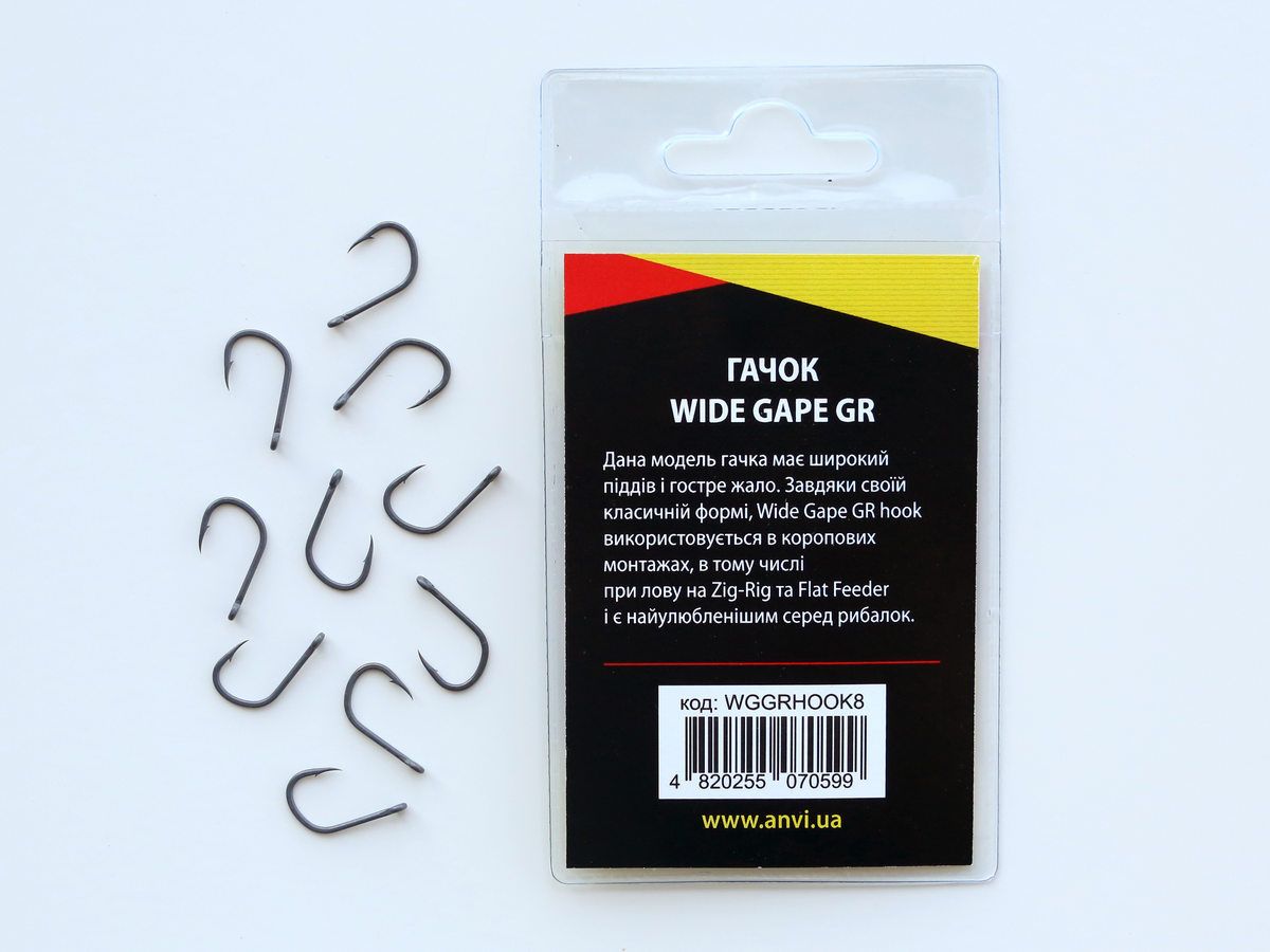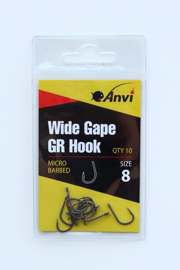 Крючки карповые Anvi Wide Gape GR Hook представлены в размерах №2, №4, №6, №8 и №10.