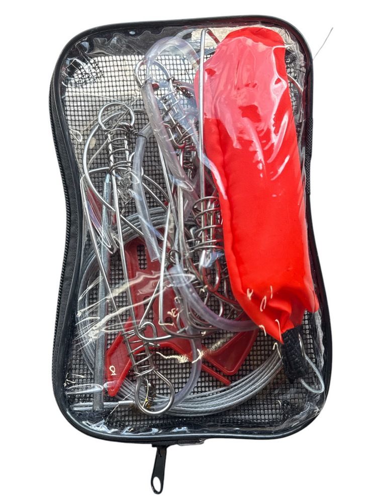 Кукан усиленный с поплавком на металлическом тросе - 7 карабинов - Длина 6 м