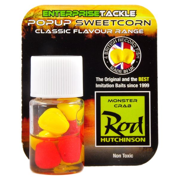 Силиконовая кукуруза Rod Hutchinson - Monster Crab Corn Yellow/Red, плавающая кукуруза, изготовлена из силикона и пропитана аттрактантом Rod Hutchinson с ароматом "монстр краб".