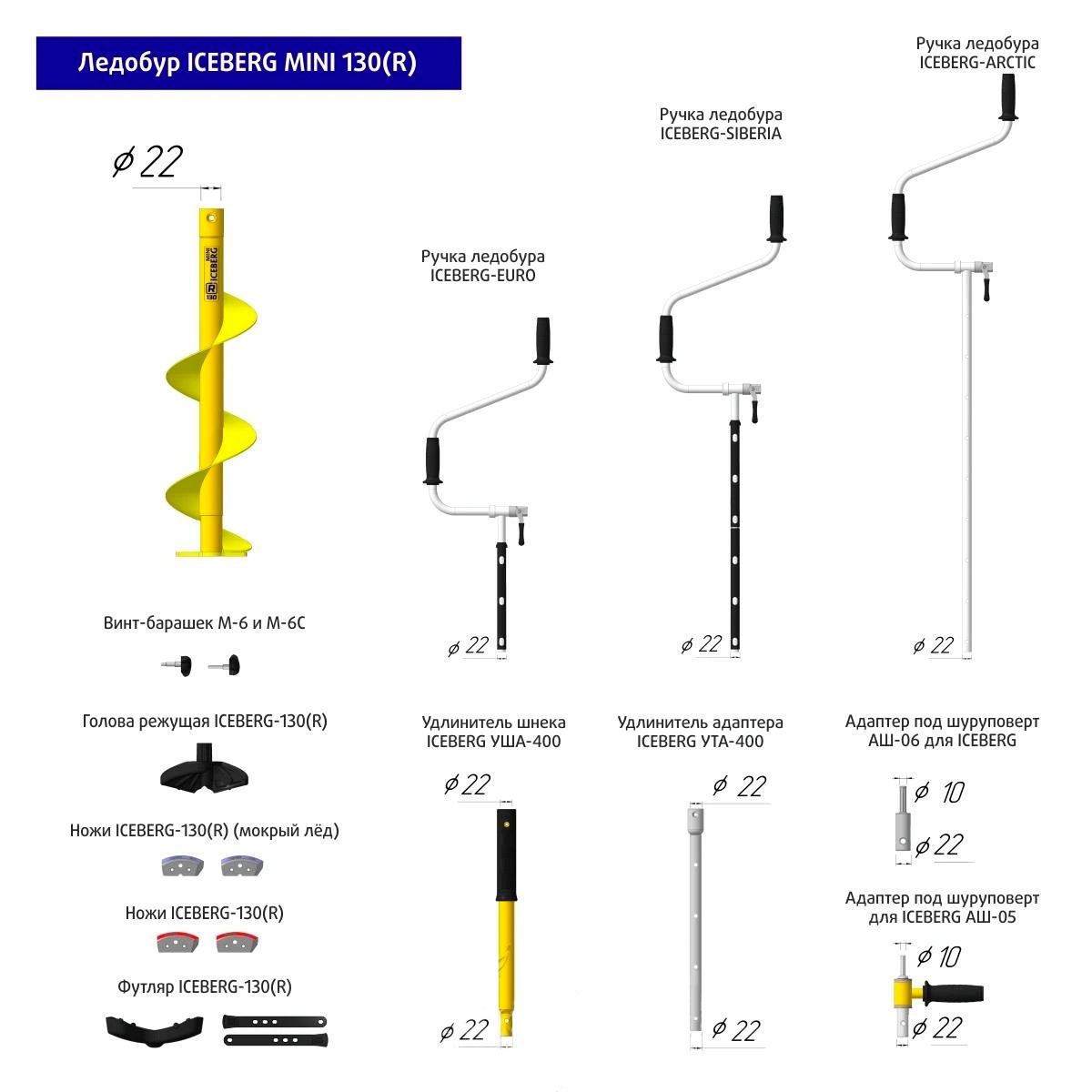 При использовании шуруповерта, мотобура и бензомотора с ледобурами "Айсберг - Евро 130" рекомендуем применять ножи для мокрого льда во избежание проскальзывания при разбуривании.