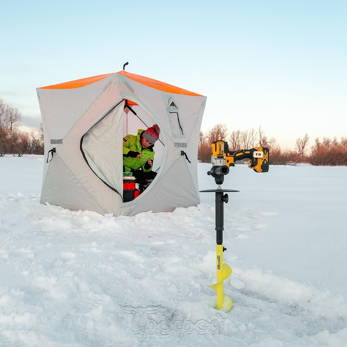 Нескользящие "теплые" ручки обеспечат максимальный комфорт при пробуривании. Верхняя и нижняя рукоятки ледобура смещены относительно оси шнека. Такое расположение рукояток позволяет вращать ледобур одновременно двумя руками, ход бура плавный, бурит без усилий. Надежное полимерное покрытие выдерживает резкие колебания температуры и сильные механические нагрузки. На шнеке сделана "теплая" насадка для переноски ледобура.