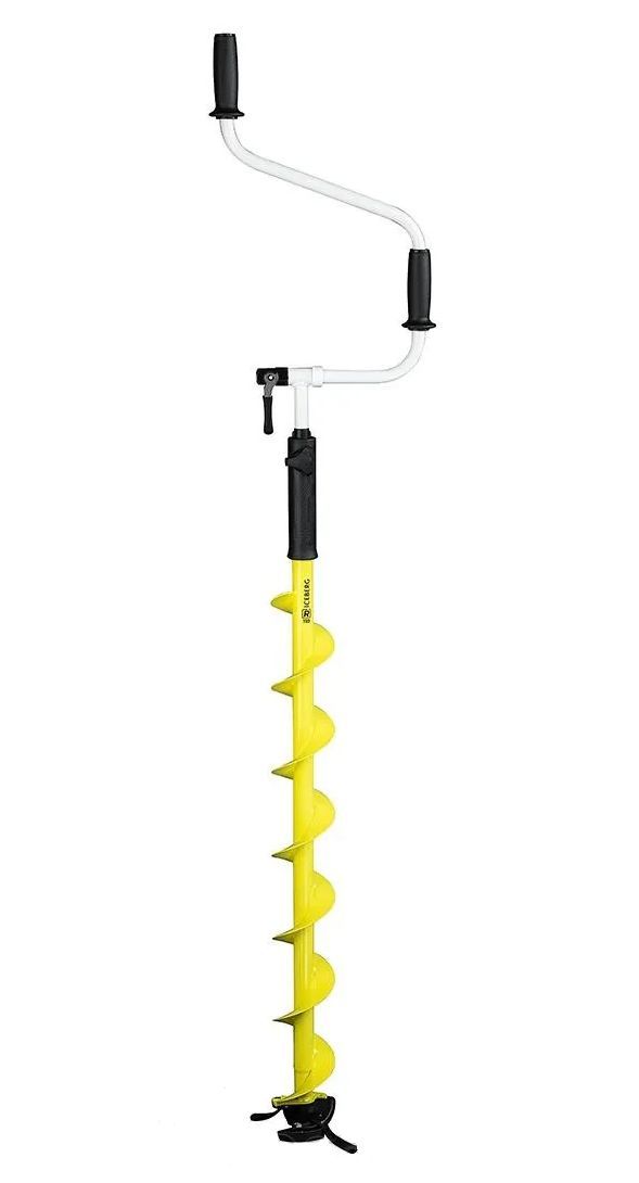 Телескопическая вставка-удлинитель позволит при помощи трех фиксированных отверстий выдвижения отрегулировать высоту ледобура под толщину льда и рост рыболова, а нескользящие «теплые» ручки обеспечат максимальный комфорт при бурении.