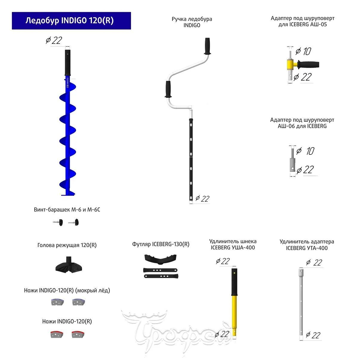 Ледобур "Indigo 120(R) v3.0" с глубиной бурения до 1,6 м и правым вращением - новинка в модельном ряду ледобуров ТОНАР, которая направлена на импортозамещение дорогих аналогов зарубежного производства. Ледобур специально разработан как более бюджетная версия ледобура ICEBERG.