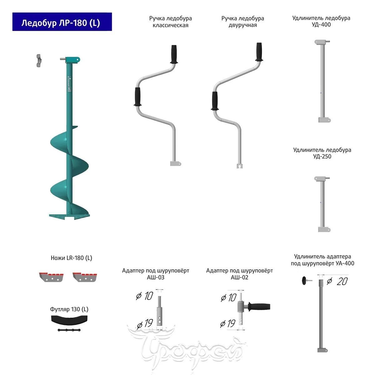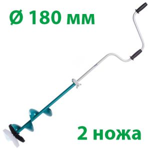 Обновленная модель двуручного Ледобура ЛР-180Д с диаметром 180 мм выпускается с цельнотянутым шнеком. Верхняя рукоятка ледобура смещена относительно оси шнека на 130 мм, а нижняя на 150 мм. Скорость бурения сразу возрастает, а нагрузка равномерно распределяется на две руки и становится незаметной. Ход бура при таком бурении более плавный (без рывков).