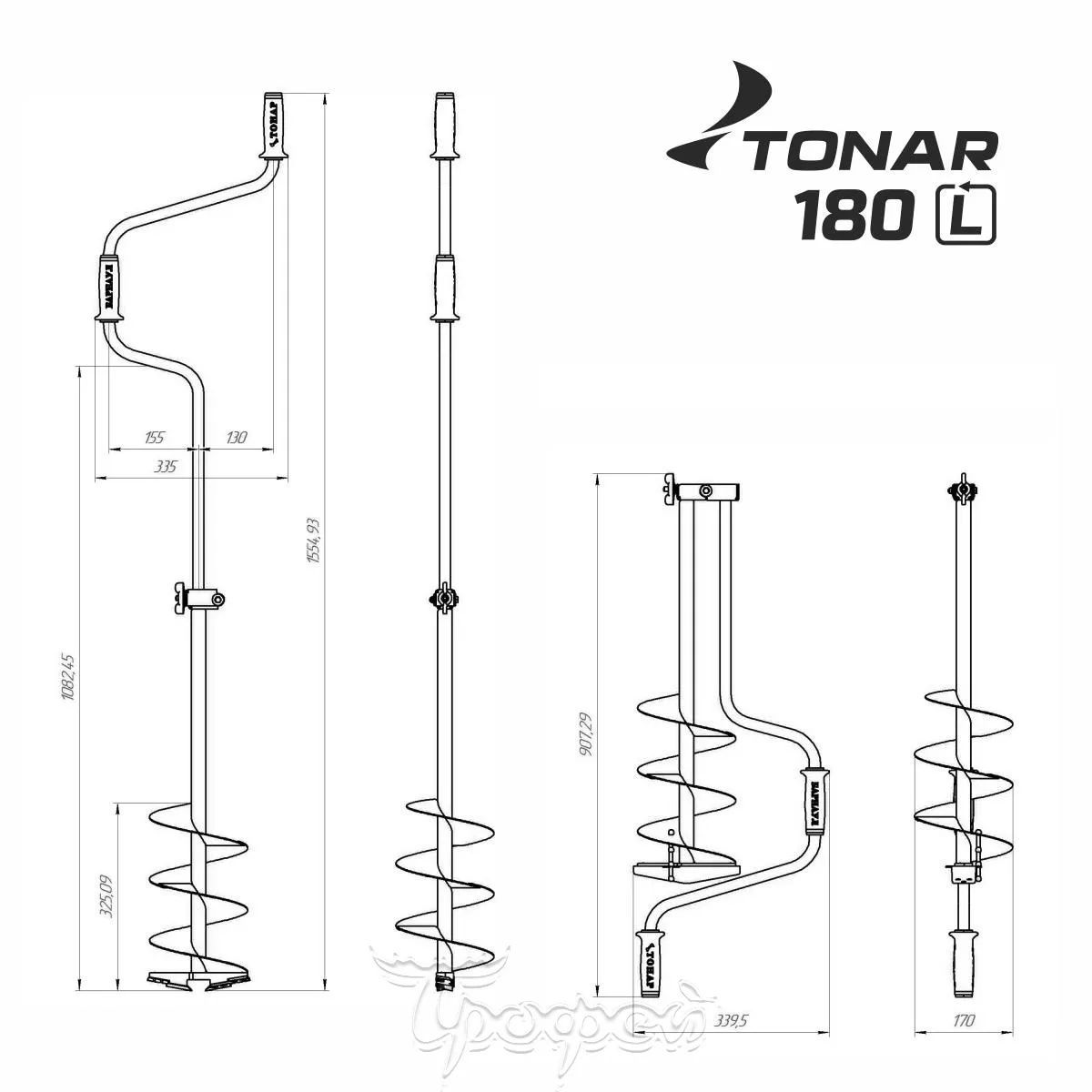Ледобур Барнаульский Тонар двуручный ЛР-180Д - 2 ножа левое вращение, цельнотянутый шнек