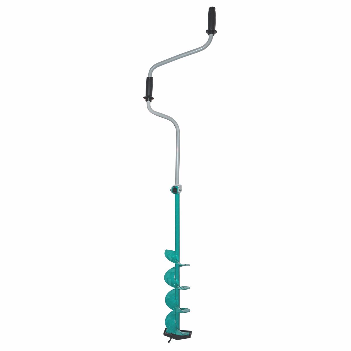 Рукоятки расположены с продуманным смещением относительно оси шнека, такая компоновка позволяет задействовать обе руки одновременно, равномерно распределяя нагрузку и значительно ускоряя процесс сверления льда, даже при большой его толщине. Ледобур отличается компактностью в сложенном виде, поэтому при транспортировке занимает минимум места.