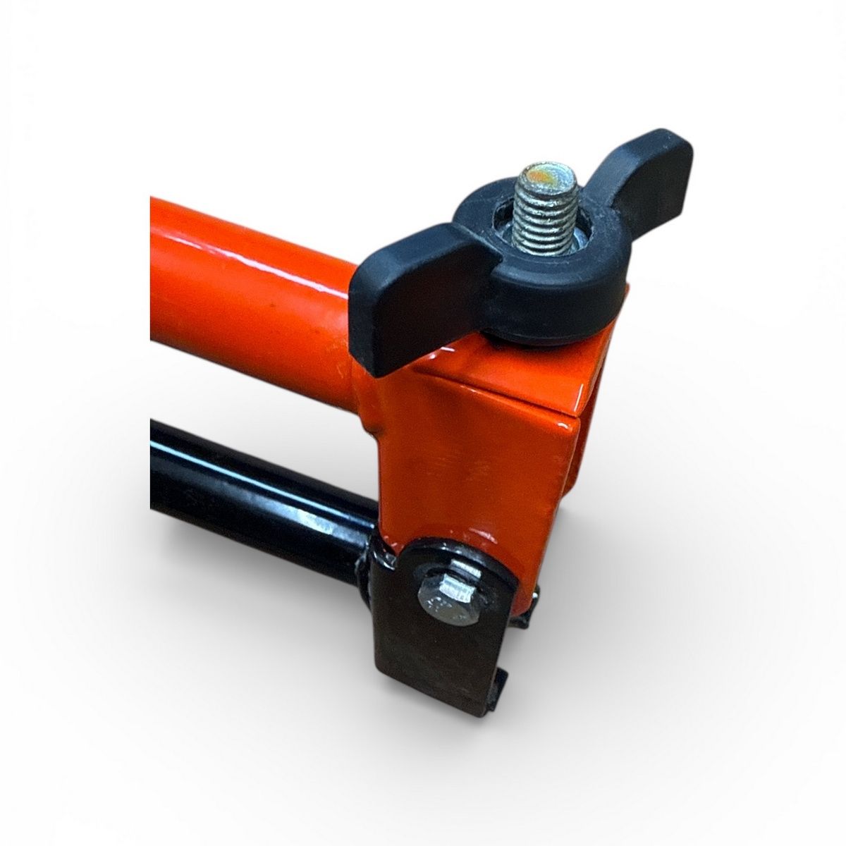 Вся конструкция ледобура окрашена в оранжево-чёрный цвет. Окраска произведена в три слоя порошковой краской с высокой стойкостью к истиранию, ударам и воздействию агрессивной среды. Такое усиленное покрытие значительно эффективнее защищает металл от коррозии и на долго продлевает срок службы изделия.