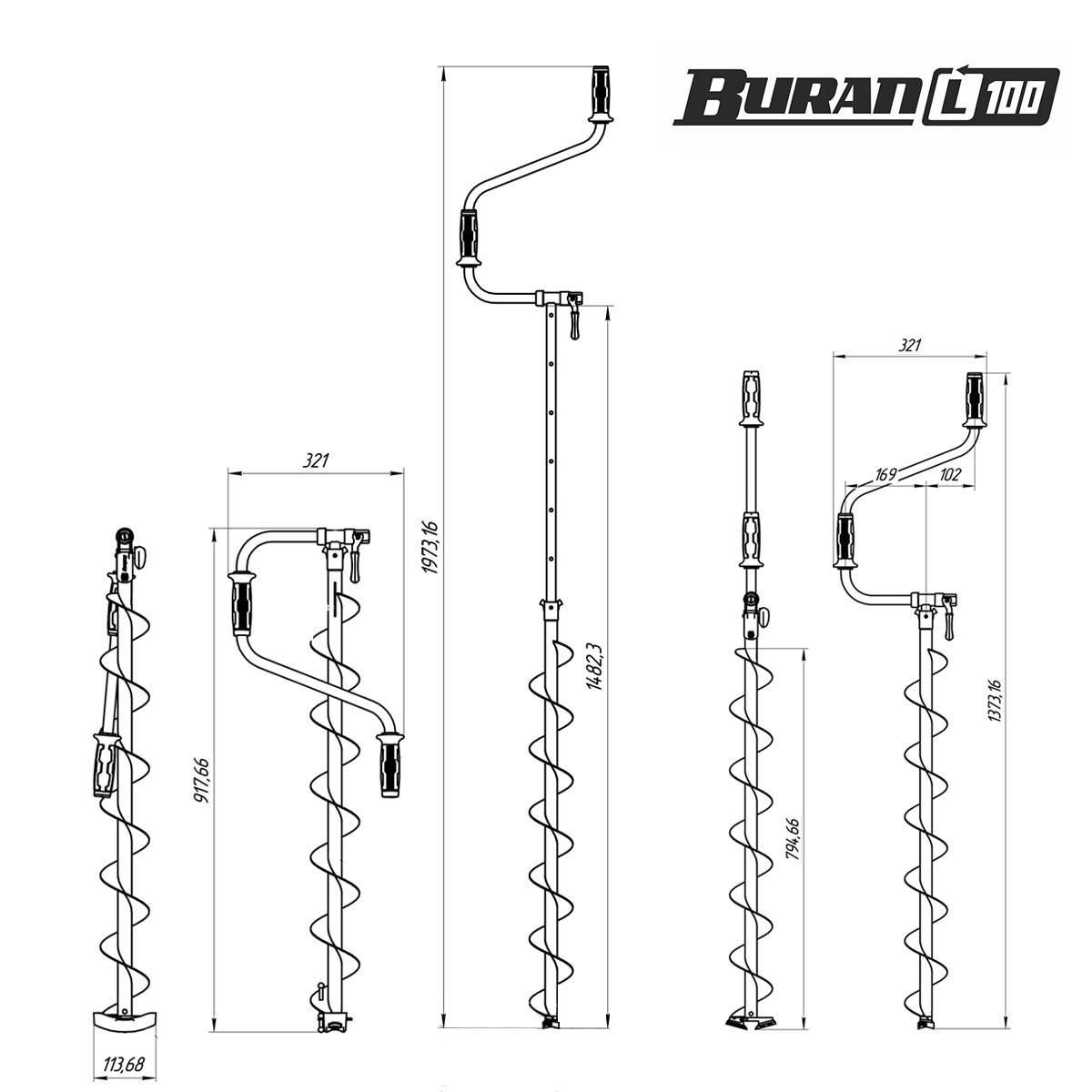 Ледобур "BURAN 100" - это высокоэффективный ледобур с цельнотянутым шнеком левого вращения, который обеспечивает быстрое освобождение лунки от шуги, тем самым снижая усилие рыболова.