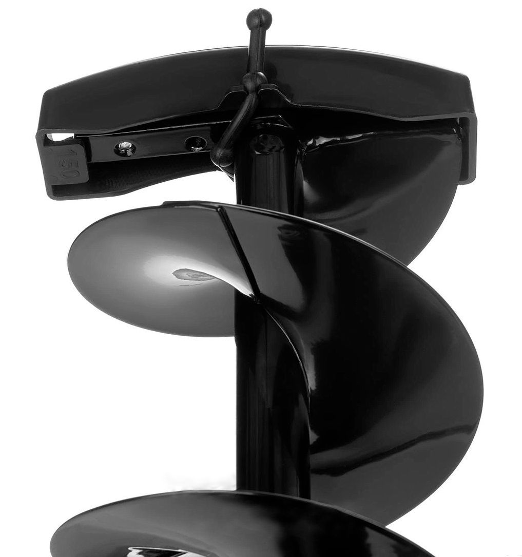 По сравнению с классическими ледобурами шаг витков шнека увеличен на 10%, что обеспечивает более быстрое освобождение лунки от шуги и снижает усилие бурения. Усиленный винт-барашек с измененным шагом резьбы на деталях замка позволил полностью решить проблему с самопроизвольным откручиванием барашка и ослаблением замка. Запатентованный замок ласточкин хвост надежно фиксирует ручку в разложенном состоянии не давая люфта.