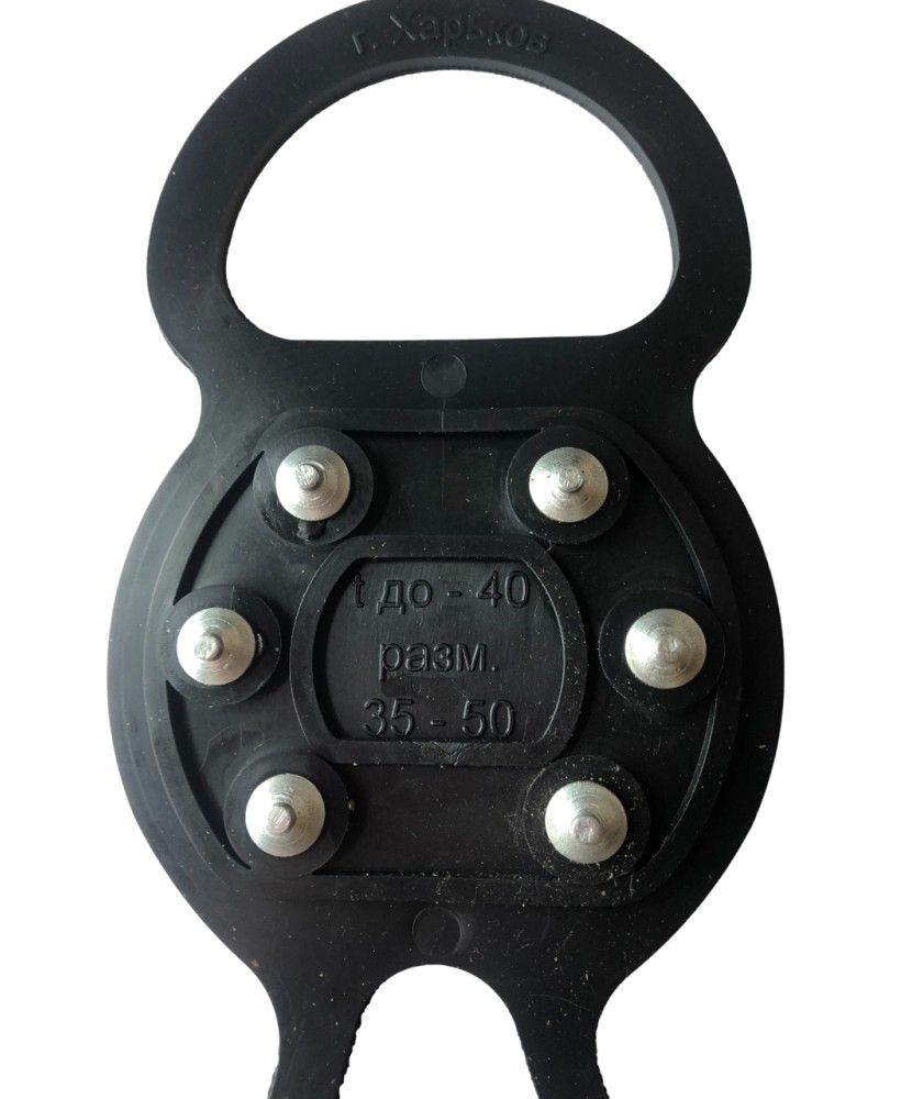 Противоскользящие накладки на обувь изготовлены из прочной резины с учётом особенностей человеческой стопы, поэтому они не вызывают дискомфорта во время использования. На тыльной стороне изделия имеется шесть противоскользящих шипов из нержавеющей стали, обеспечивающих прочное сцепление подошвы обуви с любой поверхностью дороги, даже с чистым льдом. Нержавеющая сталь не портится от постоянного нахождения во влажной среде и имеет высокую устойчивость к истиранию, поэтому срок эксплуатации изделия очень долгий.