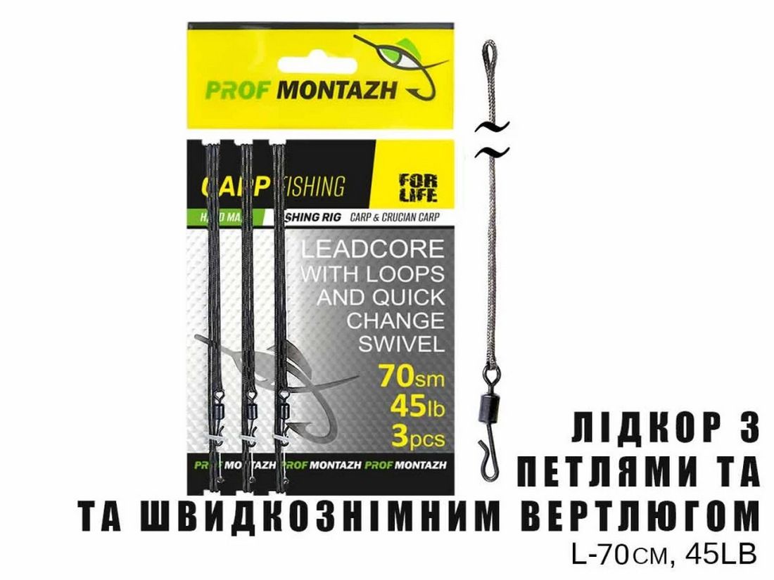 Лидкор с петлями и быстросъемным вертлюгом ПрофМонтаж (L-70см, 45LB) - Camo - 3 шт/уп