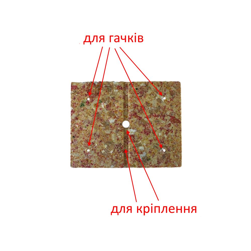 В упаковке 6 кубиков. На каждом кубике есть углубление (прорез) и центральное отверстие для его фиксации, а также 4 отверстия по краям кубика для крючков.
