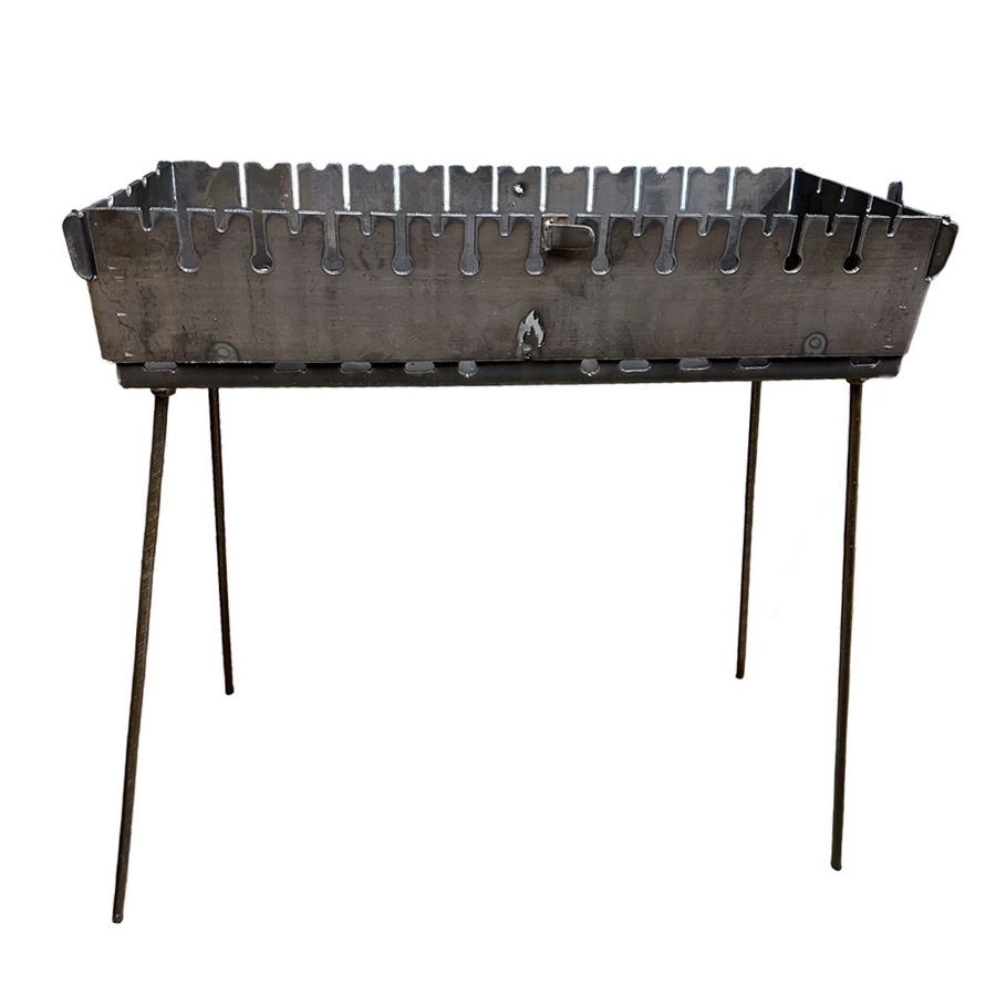 Это очень простой и надежный двухъярусный качественный мангал, с большим запасом прочности и надёжности. Мангал сделан из листов горячекатаной стали, поэтому он выдерживает воздействие высоких температур и не изменяет первоначальную форму после многократного использования.