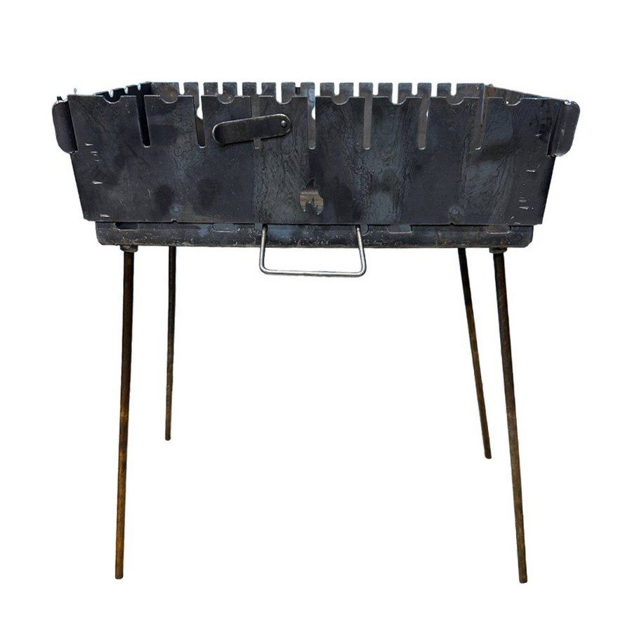 - Мангал изготовлен из высококачественной стали 3мм, обеспечивающей долговечность и надежность.