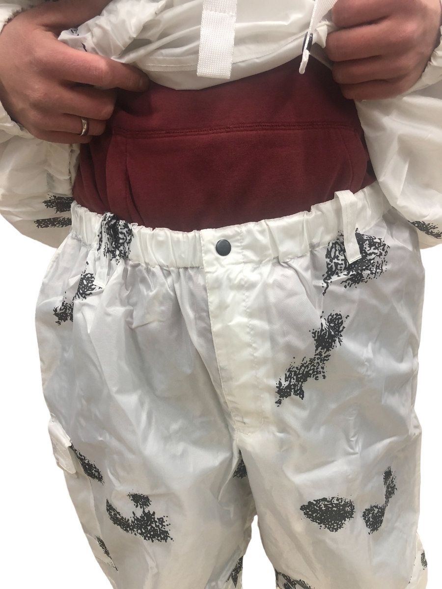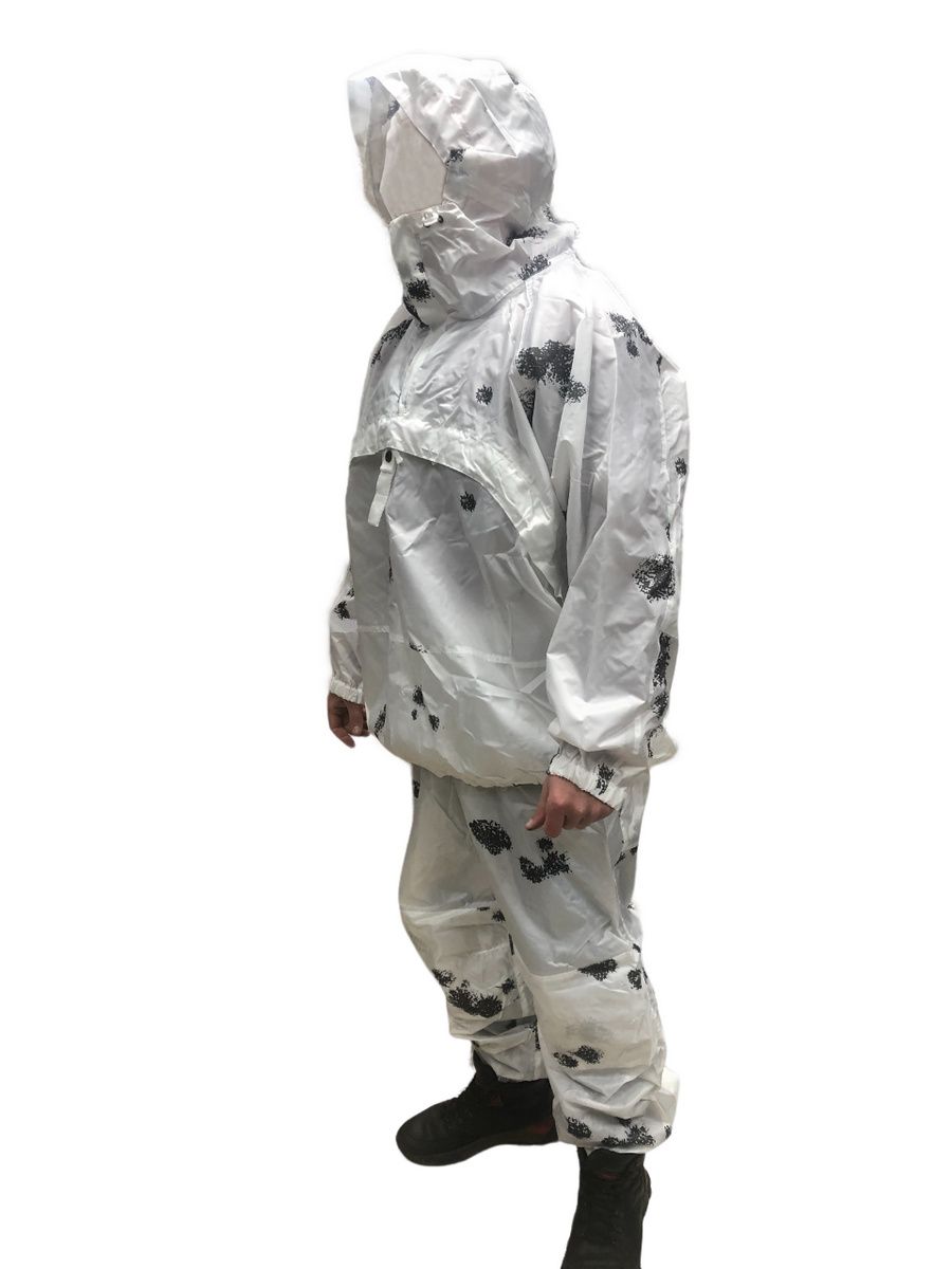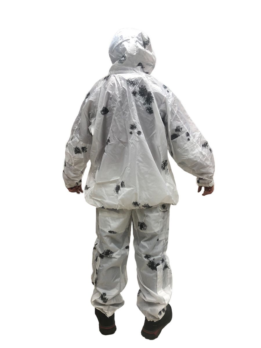 Отличная маскировка при нахождении в засаде. Окрас "Клякса" идеально сливается с окружающей средой как в поле, так и в зимнем лесу. Белые куртка и штаны издалека практически незаметны на заснеженном фоне, а наличие темных «пятен» по всему костюму имитирует ветви, неровности рельефа и т.д.
