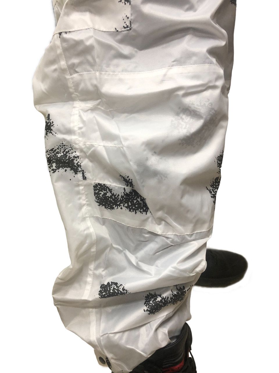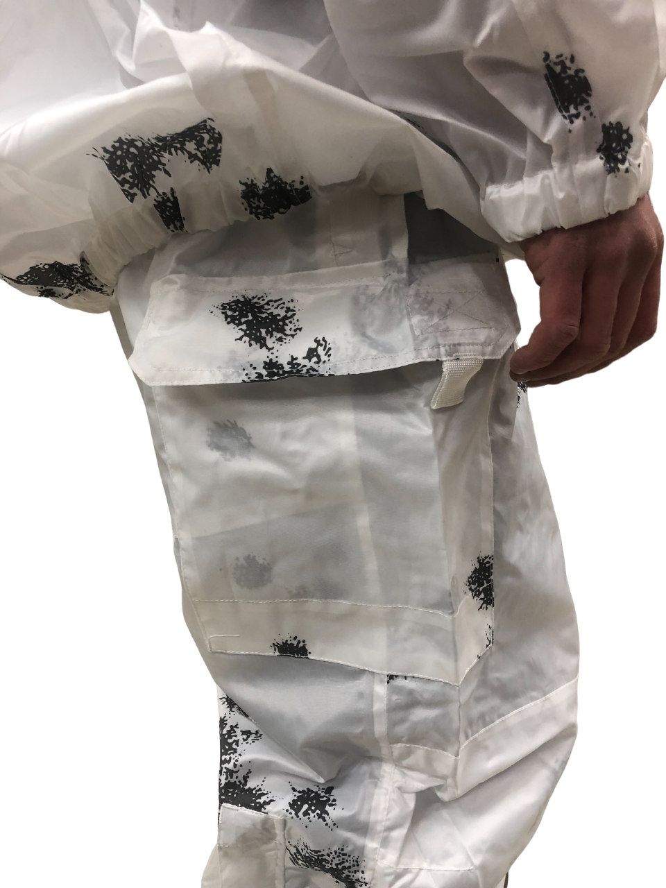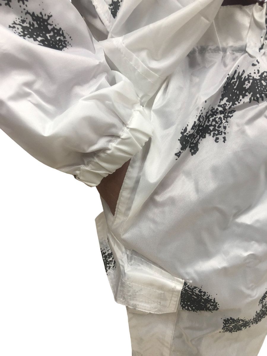 Отличная маскировка при нахождении в засаде. Окрас "Клякса" идеально сливается с окружающей средой как в поле, так и в зимнем лесу. Белые куртка и штаны издалека практически незаметны на заснеженном фоне, а наличие темных «пятен» по всему костюму имитирует ветви, неровности рельефа и т.д.