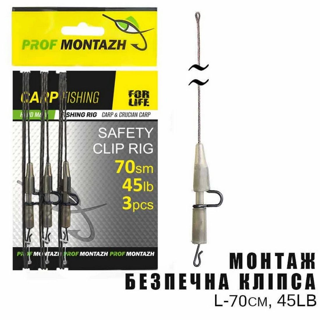 Монтаж безопасная клипса L-70см, 45lb (3 шт.) - изготовлен на качественном тонущем лидкоре Climax (Germany) с разрывной мощностью 45lb и длиной 70см. Цвет Camo, сливаясь с дном водоема делает его малозаметным для рыбы. Благодаря безопасной клипсе можно легко изменять тип и вес груза на протяжении рыбалки.