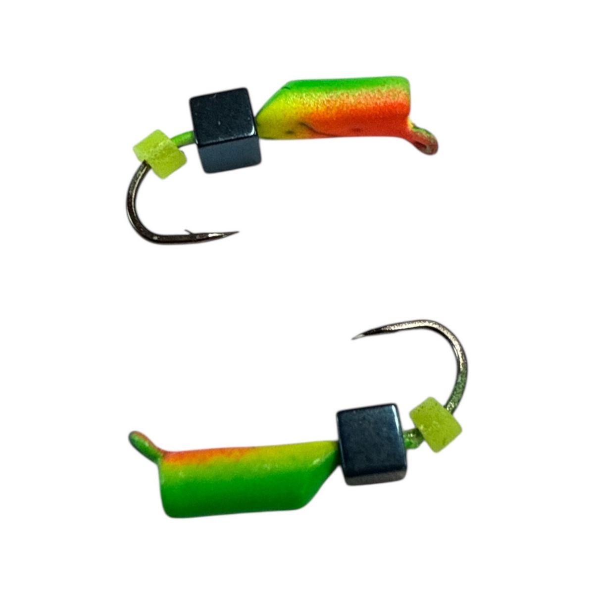 - Мормышка Гвоздик с кубиком работает по тому же принципу, что и гвоздик с бусиной или шариком, только на цевье крючка установлен металлический куб. Уловистость этой мормышки такая же, как и у мормышки с шариком или бусиной.