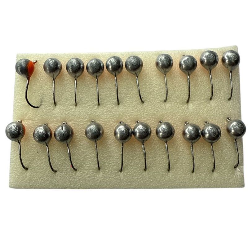 Мормышка Вольфрамовая Владимирская Шар Граненый с кембриком - С ушком - 4 мм - 0.6 г - Серебро/Красный - Арт.596